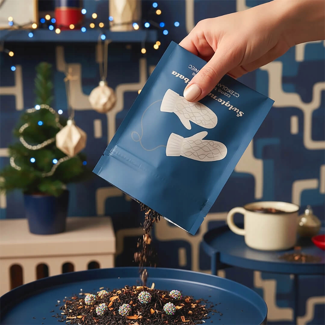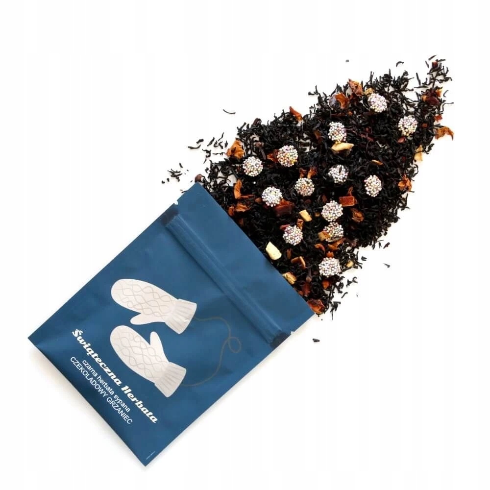ŚWIĄTECZNA TOREBKA HERBATA CZARNA SYPANA "CZEKOLADOWY GRZANIEC" - PREZENT UPOMINEK NA MIKOŁAJA ŚWIĘTA GWIAZDKĘ BOŻE NARODZENIE POD CHOINKĘ DLA KOBIETY FACETA ŻONY MĘŻA