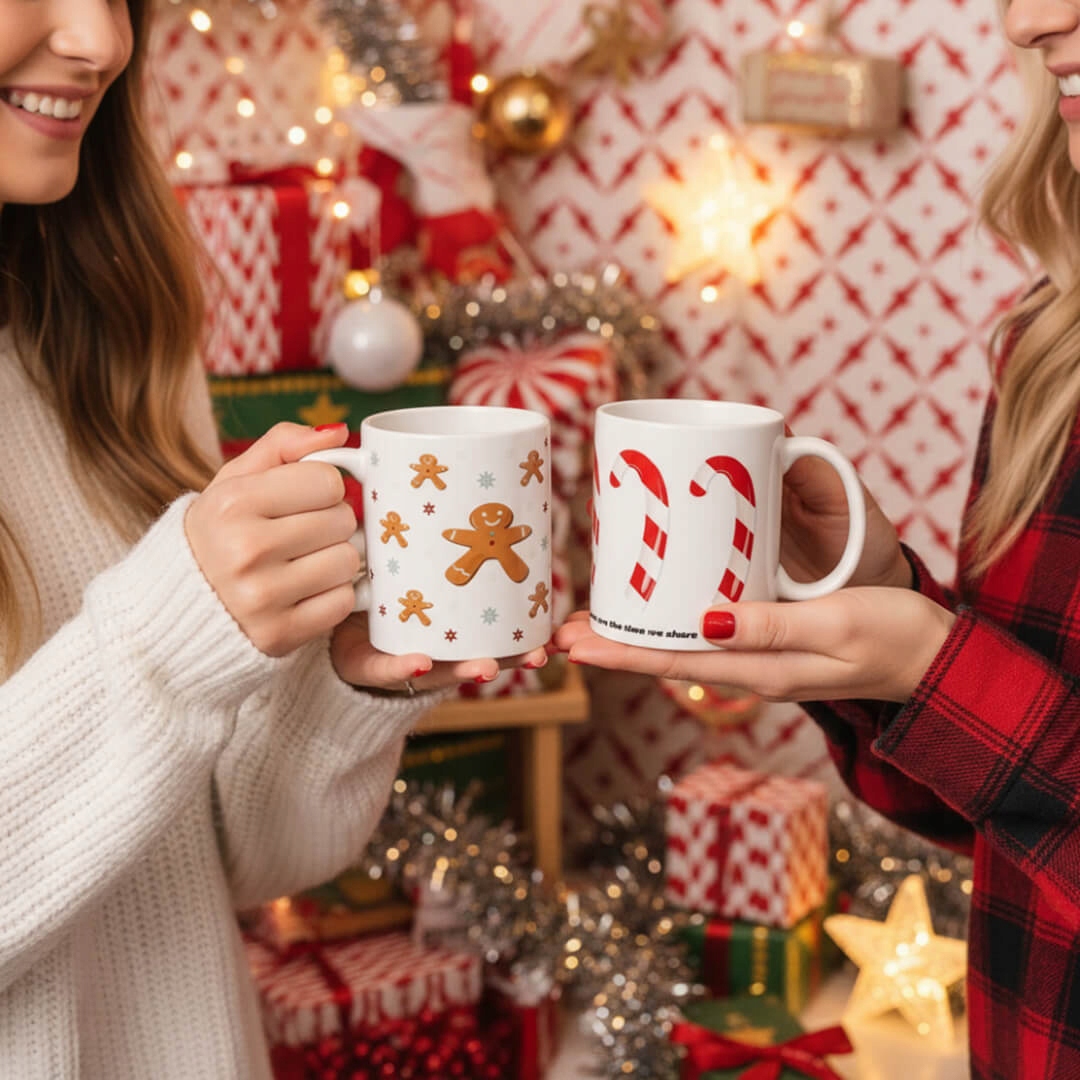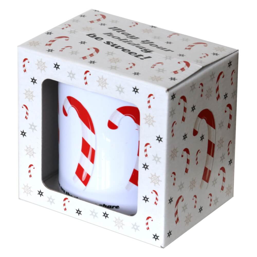KUBEK NA KAWĘ HERBATĘ CZEKOLADĘ Z MOTYWEM ŚWIĄTECZNYCH LASEK CANDY 300ML - PREZENT UPOMINEK NA MIKOŁAJA ŚWIĘTA GWIAZDKĘ BOŻE NARODZENIE POD CHOINKĘ DLA KOBIETY FACETA