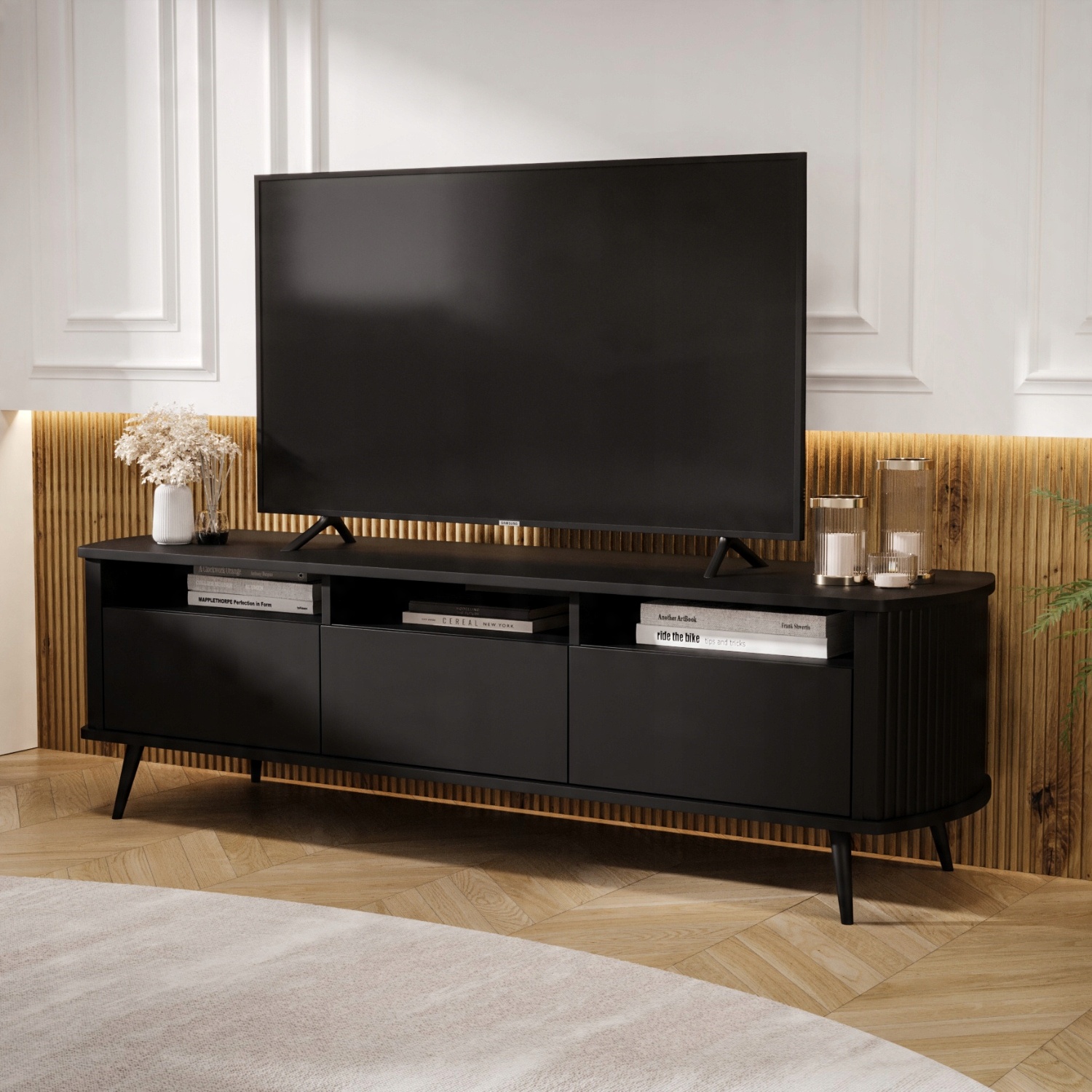 Szafka RTV Pod Telewizor CZARNA Komoda Do Salonu Nóżki PREMIUM VERLO 150cm
