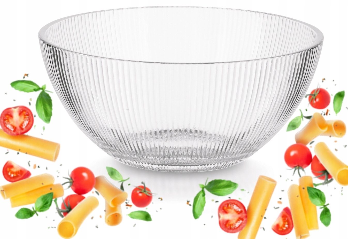 SZKLANA DUŻA SALATERKA W PRĄŻKI 21cm, 2L na sałatki owoce miska bezbarwna