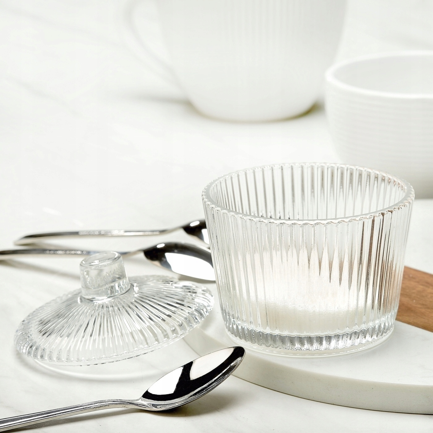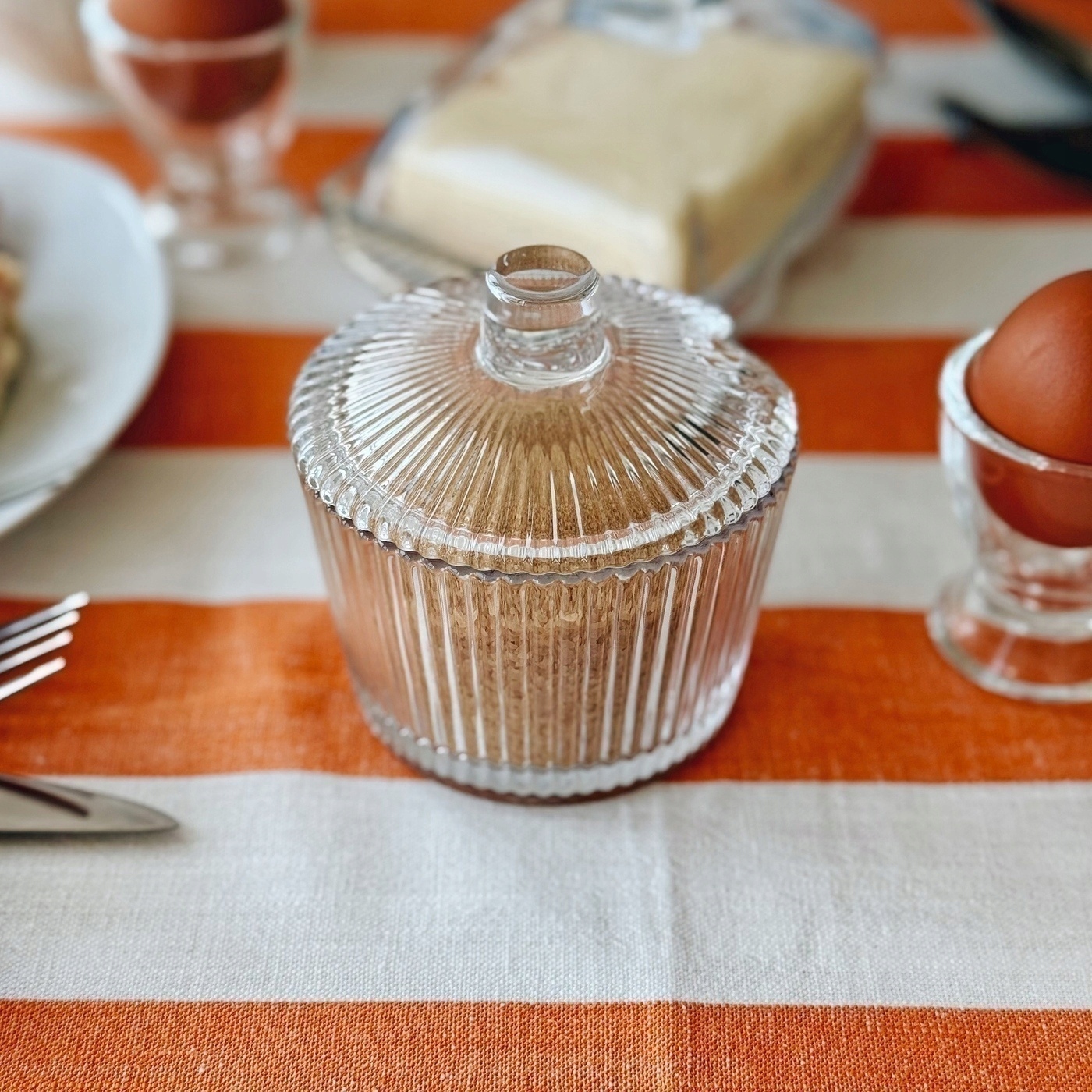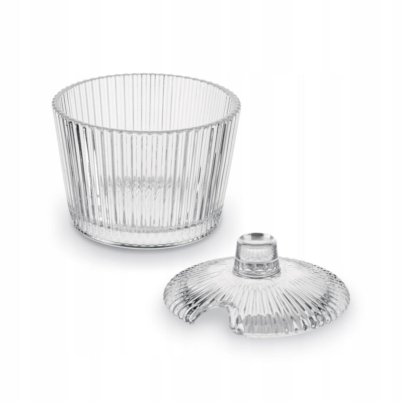 SZKLANA przezroczysta W PRĄŻKI CUKIERNICA cukierniczka 200 ml na cukier