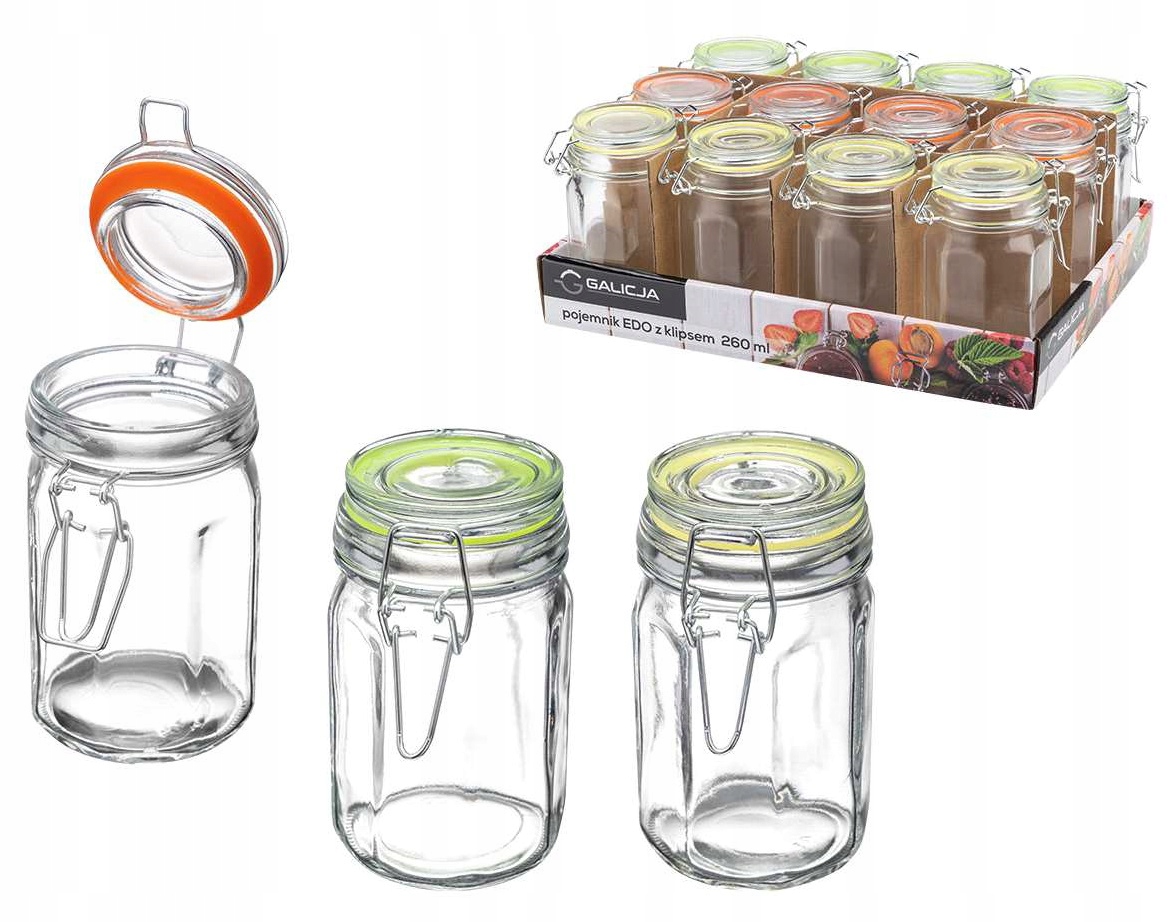 SZKLANY POJEMNIK mały słoik NA KLIPS 12 x 260 ml