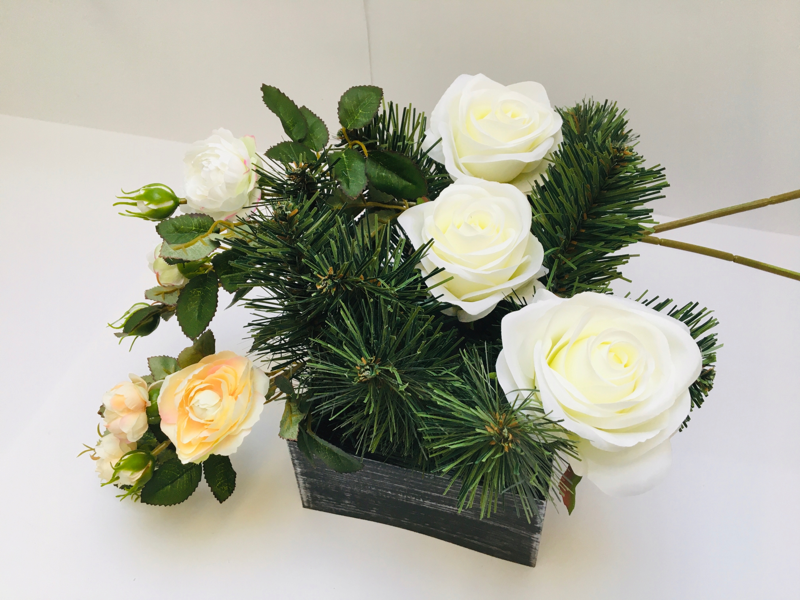 SZTUCZNE KWIATY główka kwiatowa wyrobowa RÓŻA całkiem BIAŁA bukiet stroik