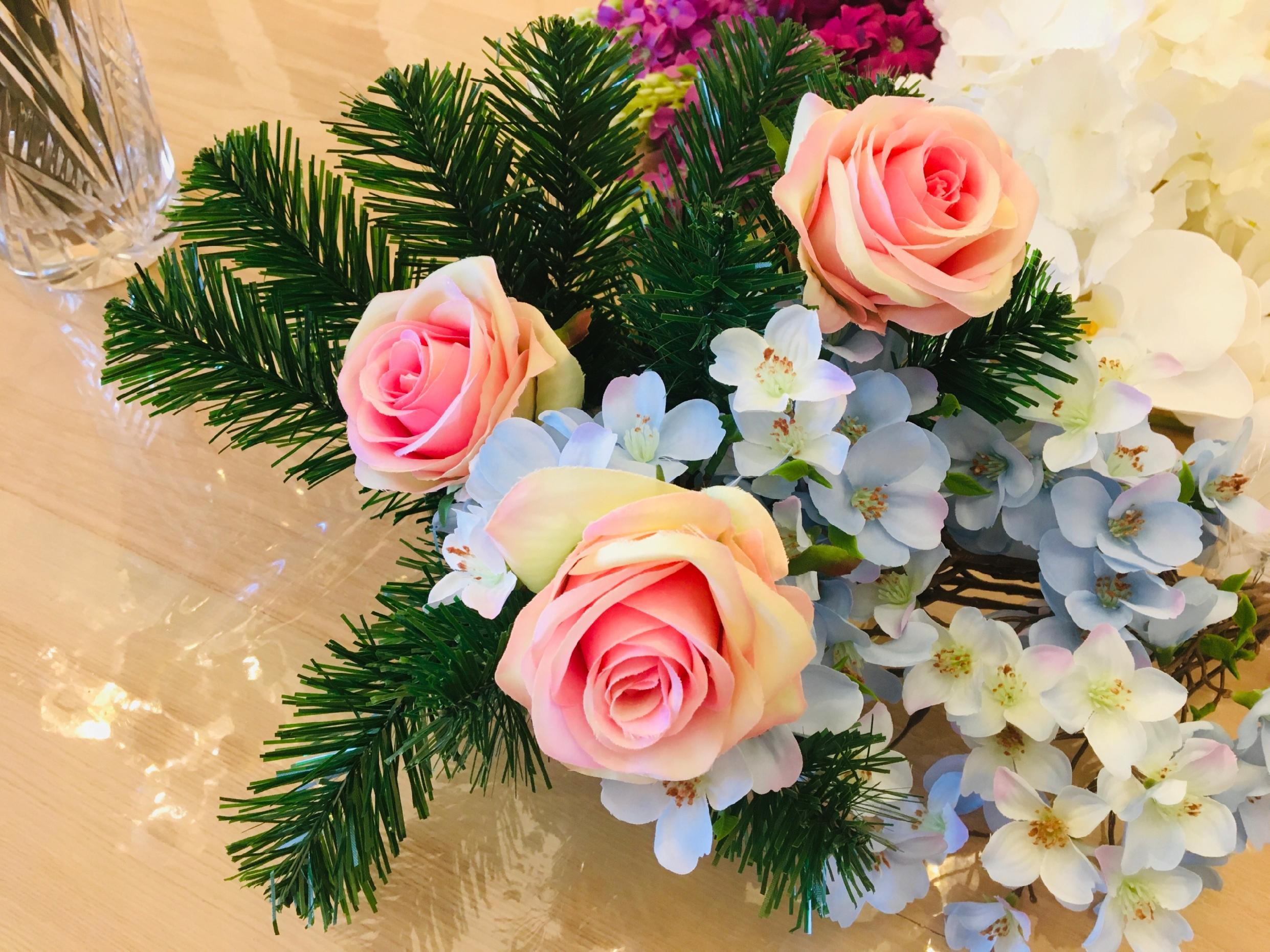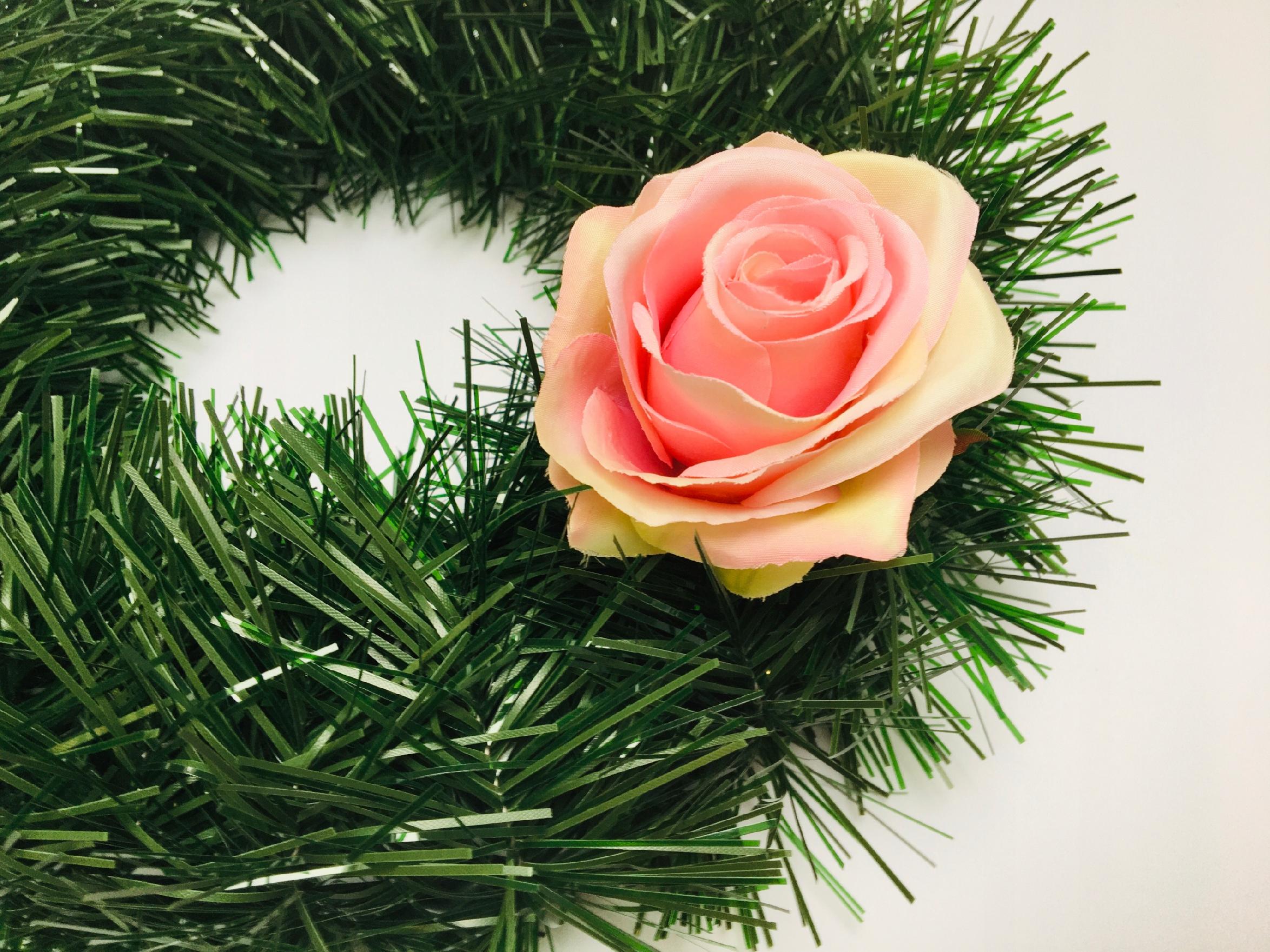 SZTUCZNE KWIATY RÓŻA RÓŻOWO ZIELONA wyrobowa do stroika wiązanki bukietu