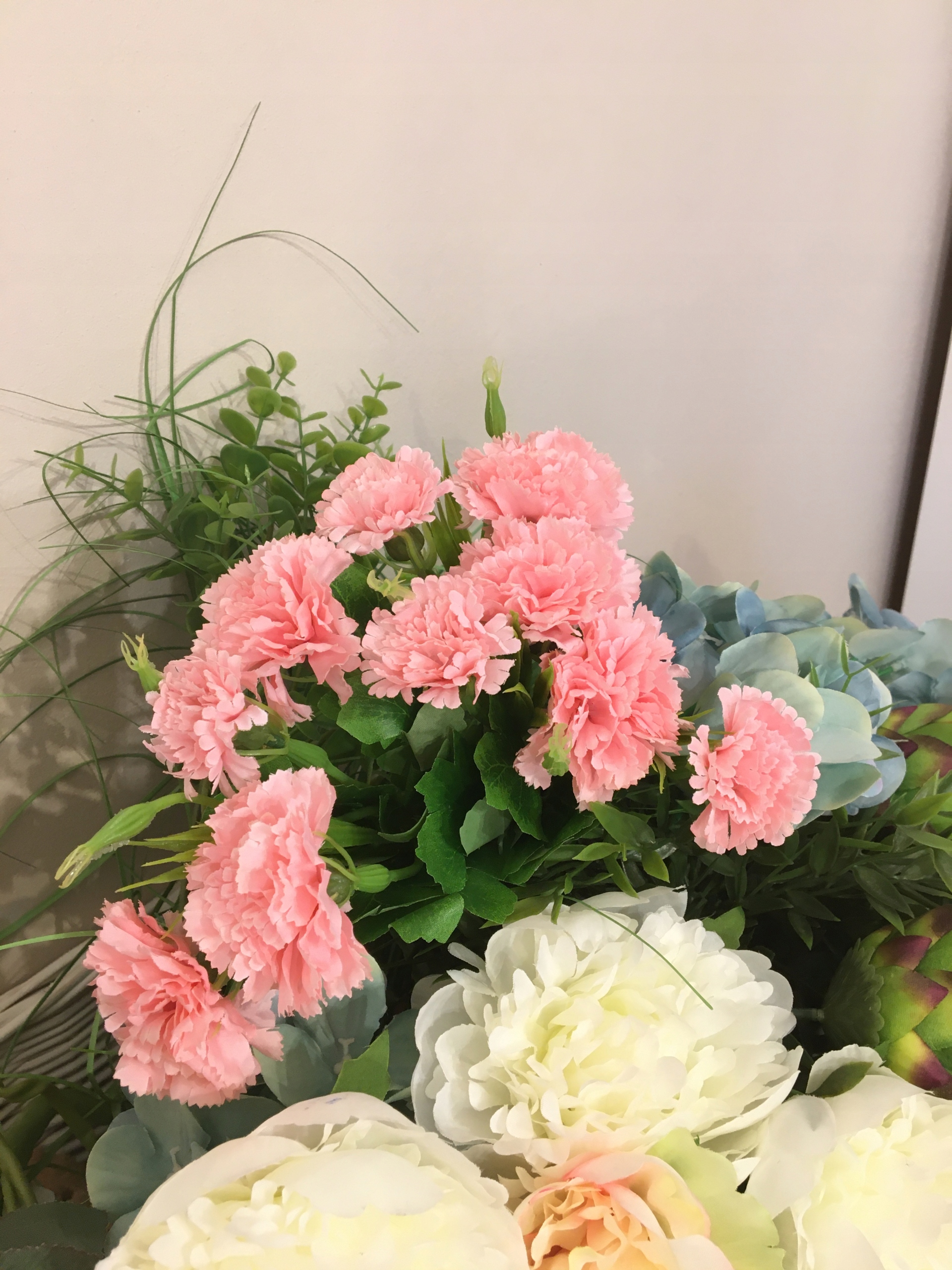 SZTUCZNE RÓŻOWE Goździki bukiet DEKORACJA STROIK WAZONU DONICZKI wiosna