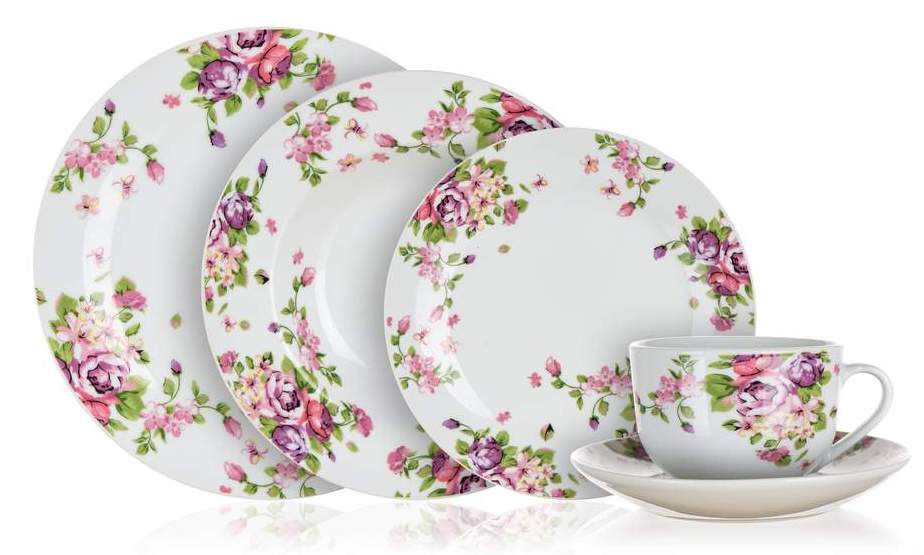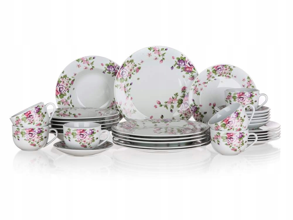 TALERZEKOMPLET OBIADOWY W KWIATY gotowy prezent 30 elem talerze jadalni box
