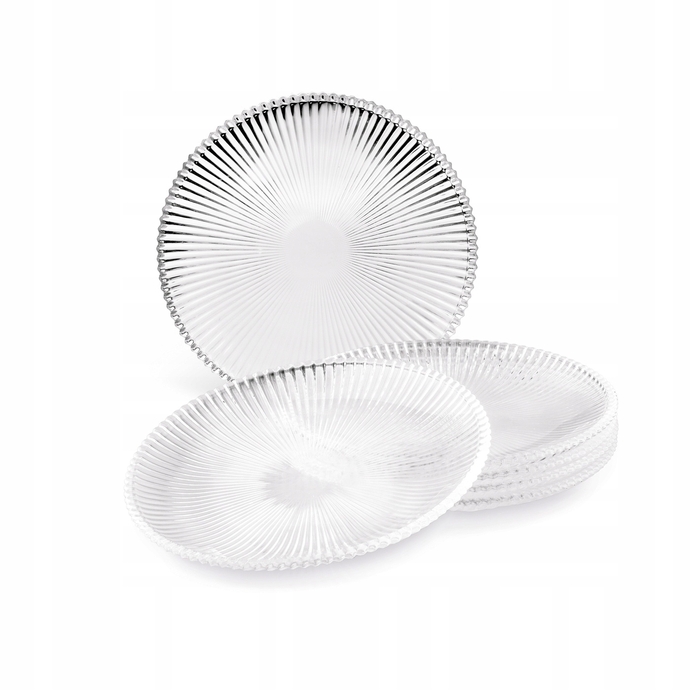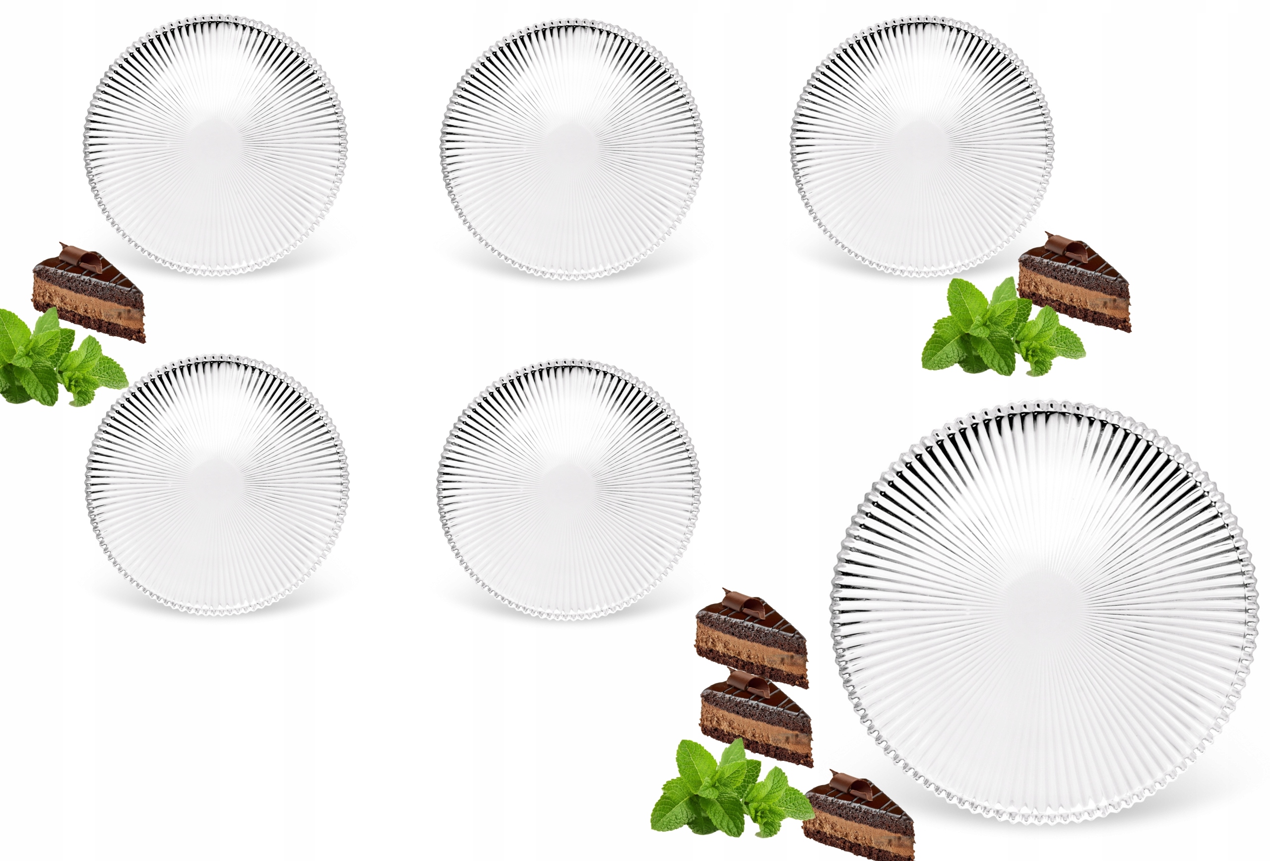 TALERZYKI DESEROWE SZKLANE 6szt W PRĄŻKI 20cm na desery ciasto prezent