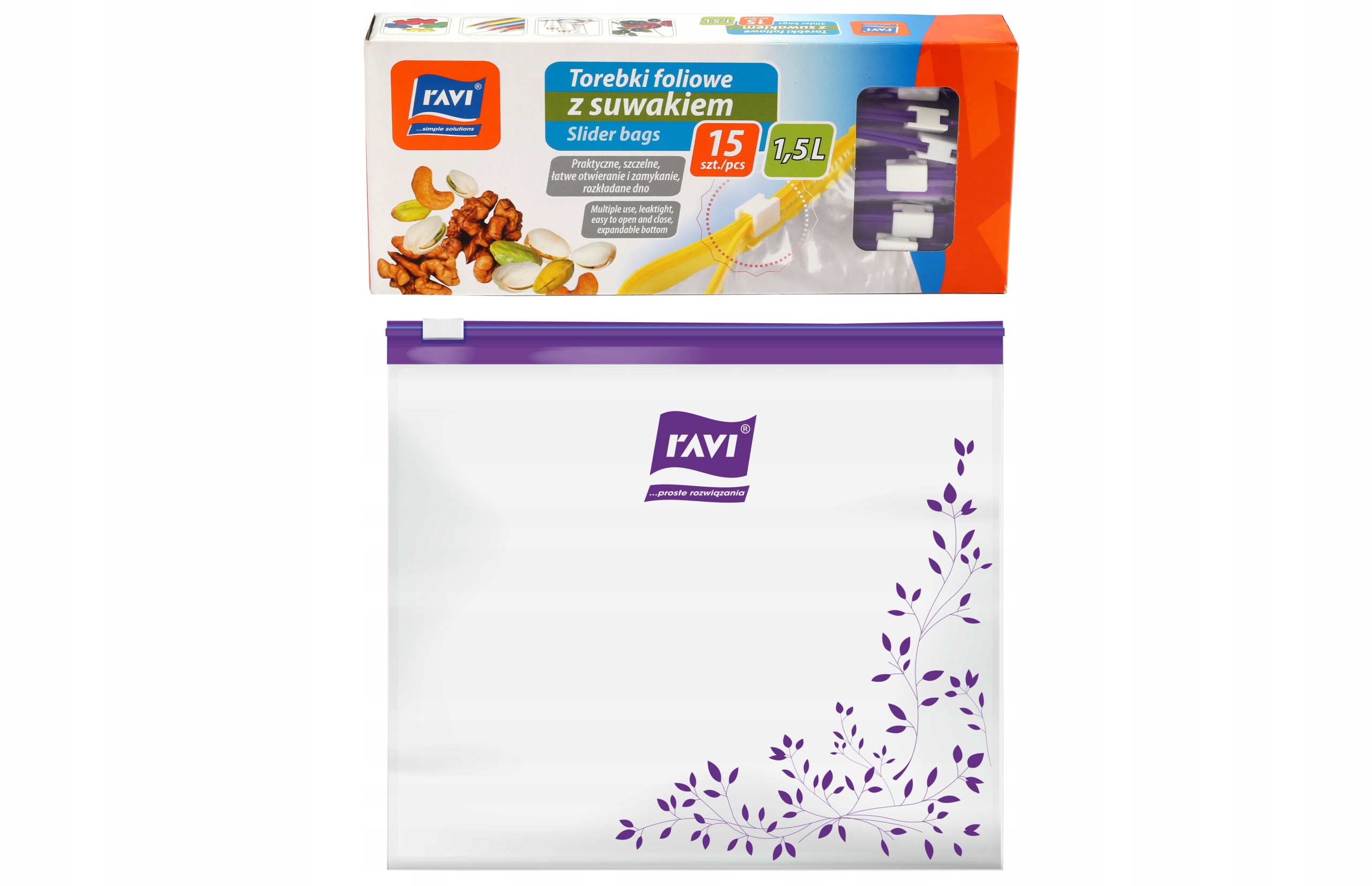 Torebki woreczki foliowe z suwakiem 1,5 L 15 szt na żywność kosmetyki inne