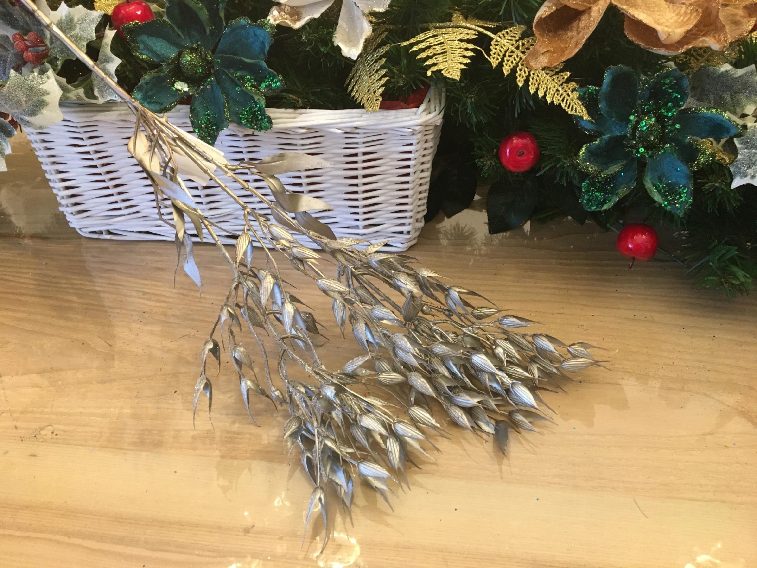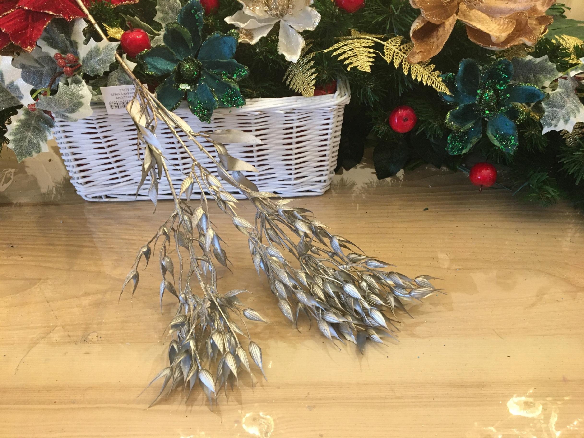 TRAWA sztuczna DUŻA GAŁĄZKA dekoracyjna do stroik świąteczny srebrna 75cm