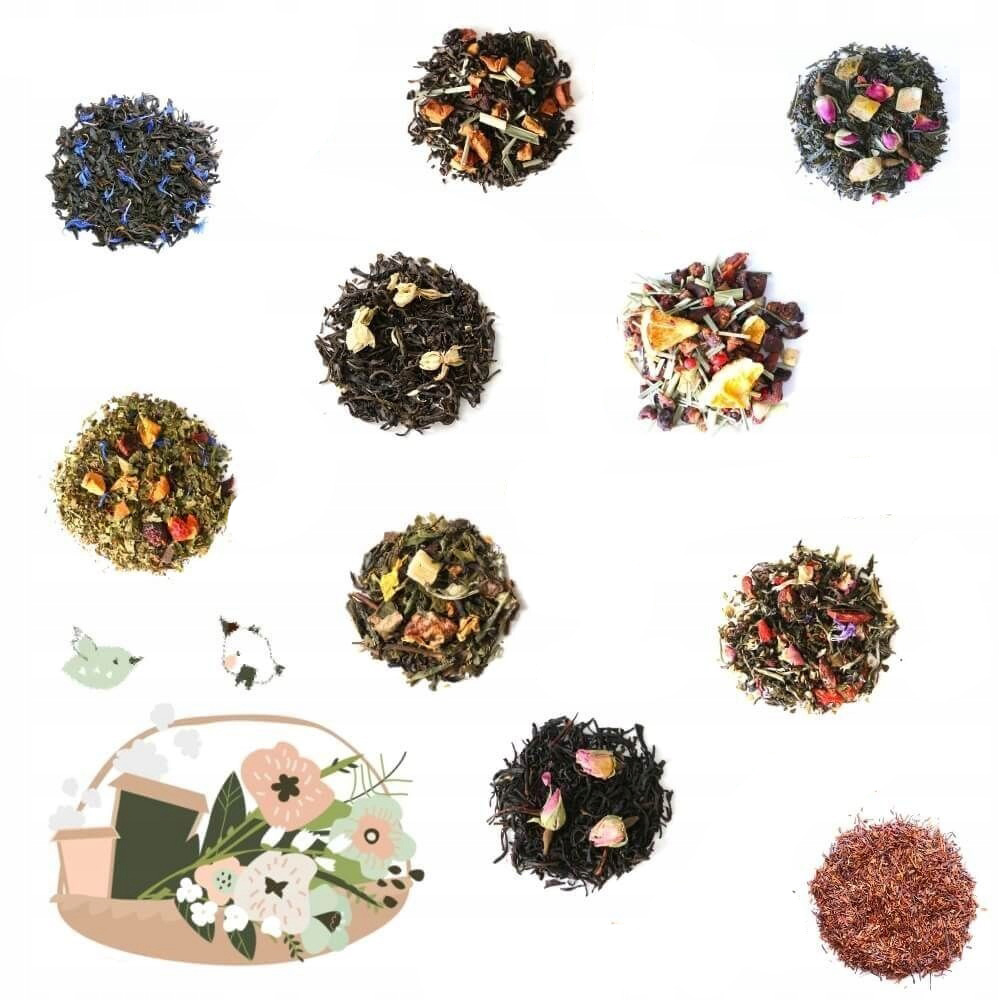 ⭐️ W zestawie znajdziesz 10 różnych smaków herbat sypanych: