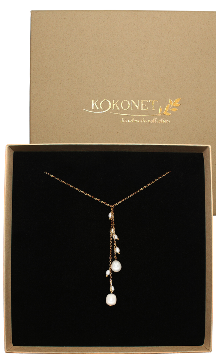 Ręcznie robiony złoty naszyjnik z perłami naturalnymi ALULA gold to połączenie nowoczesności z ponadczasowym charakterem i elegancją pereł. Delikatny łańcuszek ze stali nierdzewnej w połączeniu z malutkimi perełkami naturalnymi oraz jedną większą na końcu tworzy estetyczną całość elegancko zdobiąc głębokie dekolty czy gładkie zabudowane suknie ślubne.