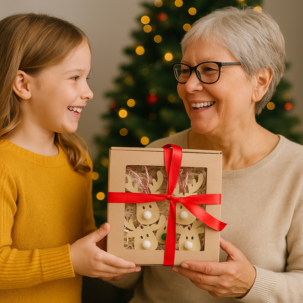 • Eleganckie pudełko prezentowe – z okienkiem i czerwoną wstążką, dzięki czemu zawieszki świetnie sprawdzą się jako gotowy upominek.