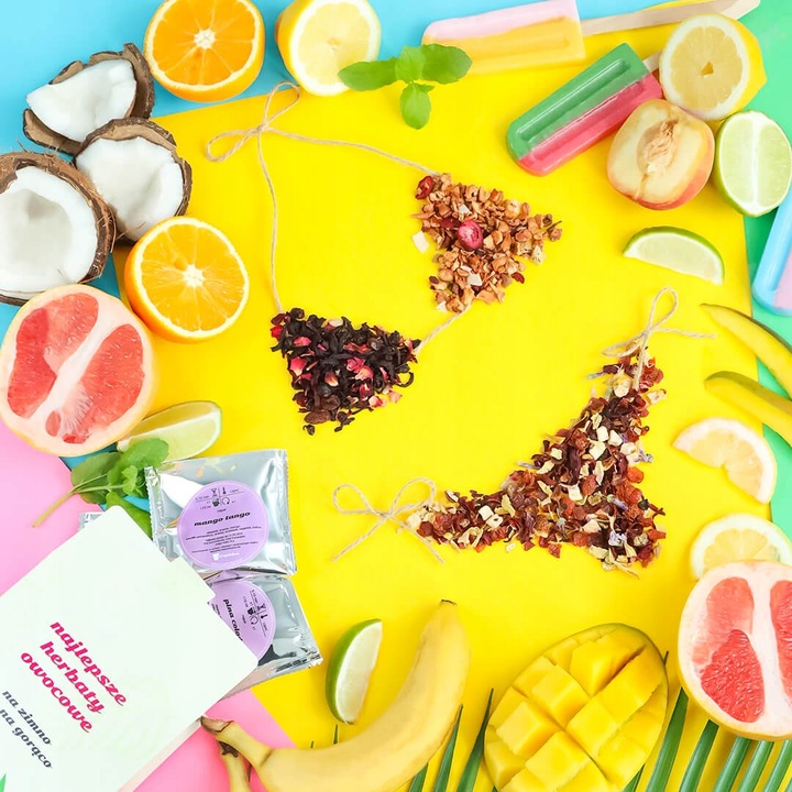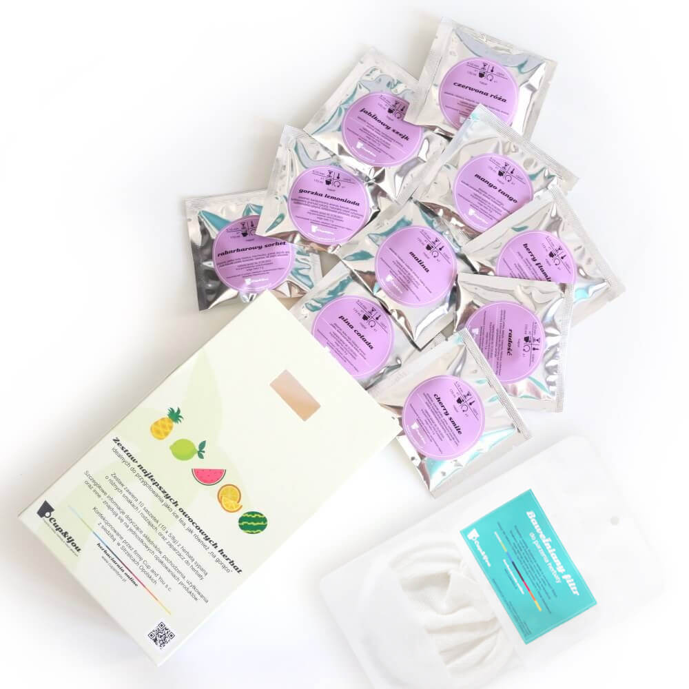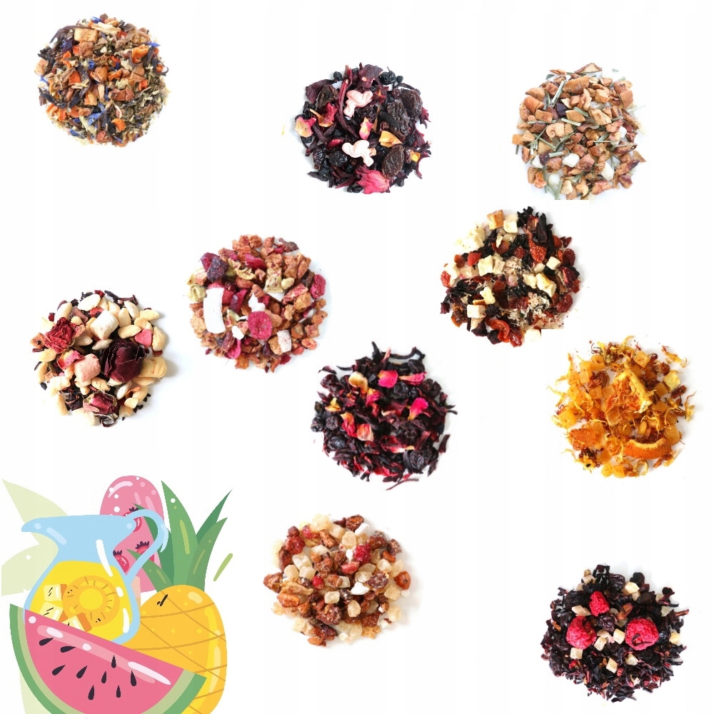 ZESTAW 10 ORZEŹWIAJĄCYCH HERBAT SYPANYCH OWOCOWYCH NA ZIMNO JAKO ICE TEA + ZAPARZACZ NA LATO - PREZENT UPOMINEK DLA FACETA KOBIETY NIEJ NIEGO