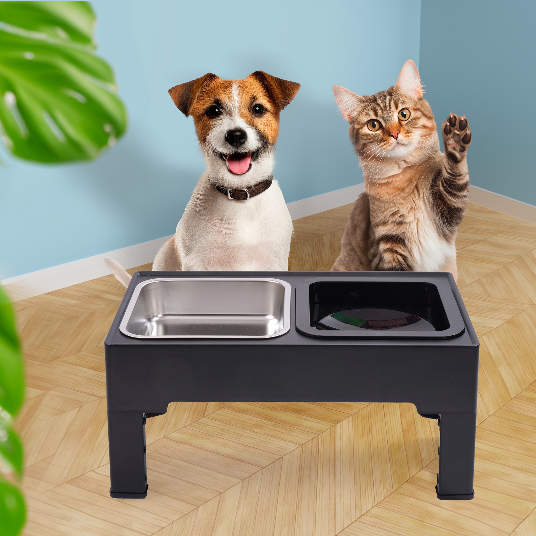 Zestaw 2 Misek Z Regulacją Wysokości Pies Kot Stal Nierdzewna Na Stojaku