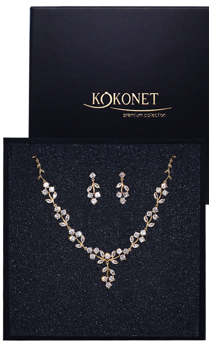 Zestaw biżuterii BOHO listki złoty pozłacany naszyjnik kolczyki w PUDEŁKU