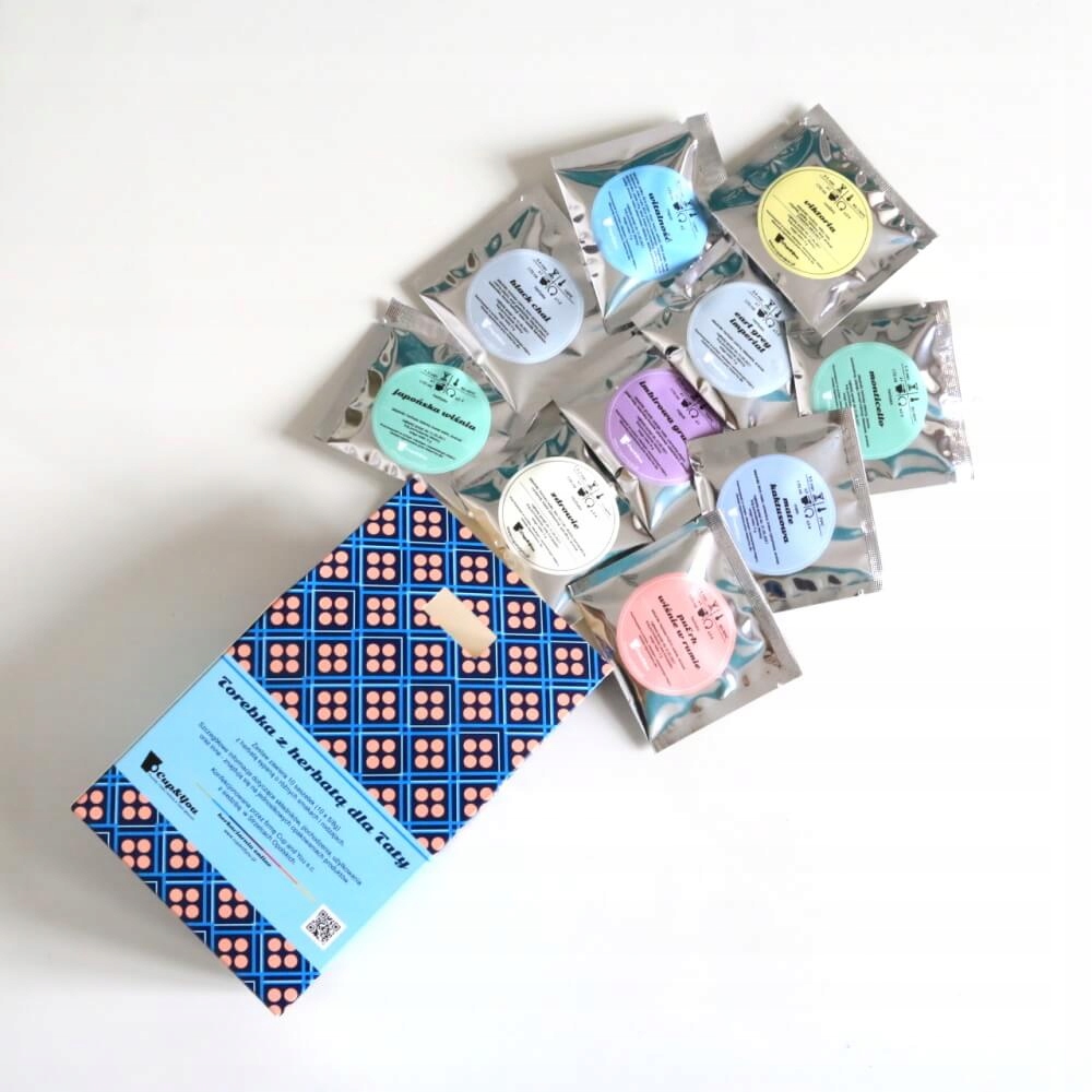ZESTAW BOX PREZENTOWY UPOMINKOWY - 10 RÓŻNYCH HERBAT SYPANYCH W SASZETKACH - PREZENT UPOMINEK DLA TATY TEŚCIA NA DZIEŃ OJCA URODZINY