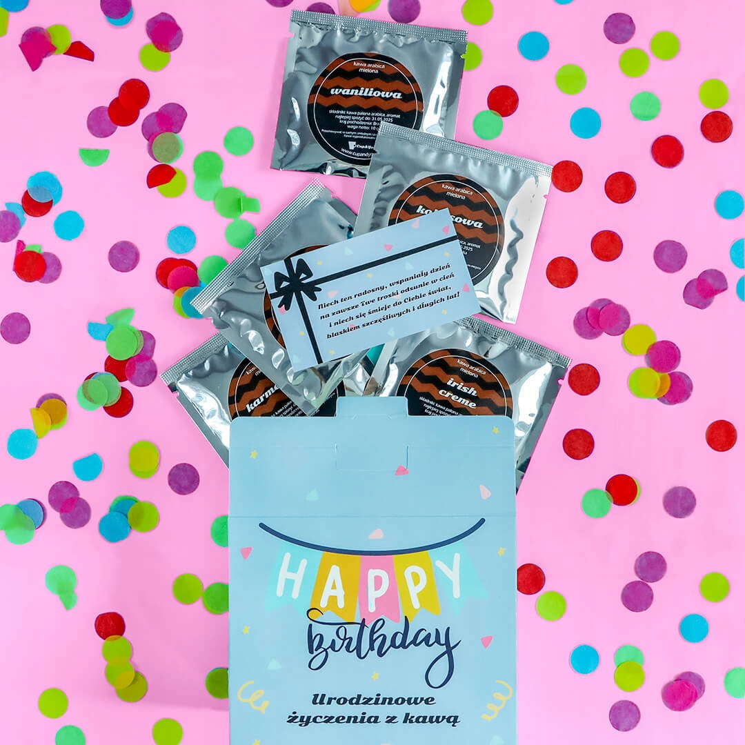 Zestaw kaw w słodkiej urodzinowej torebce 5 różnych smaków prezent upominek