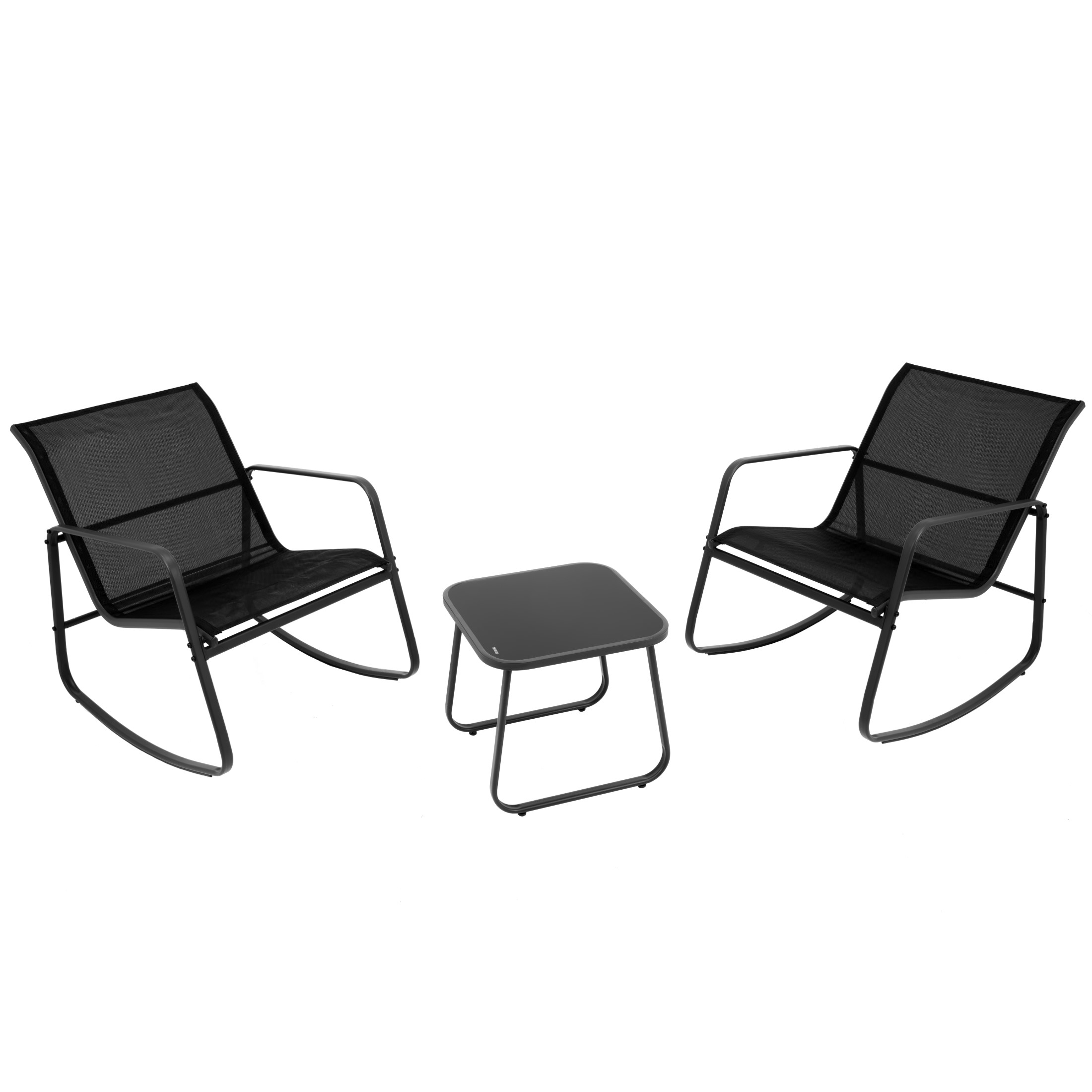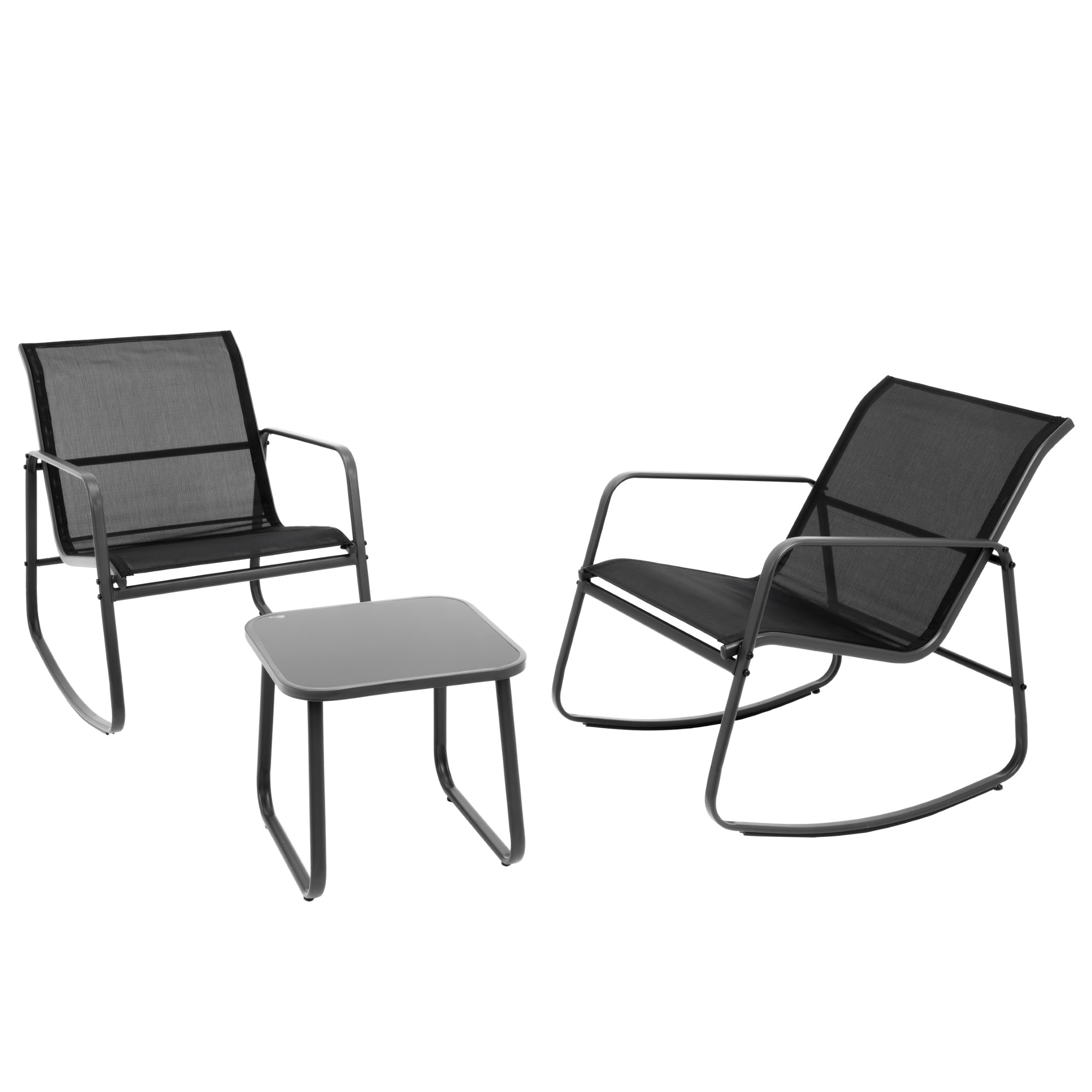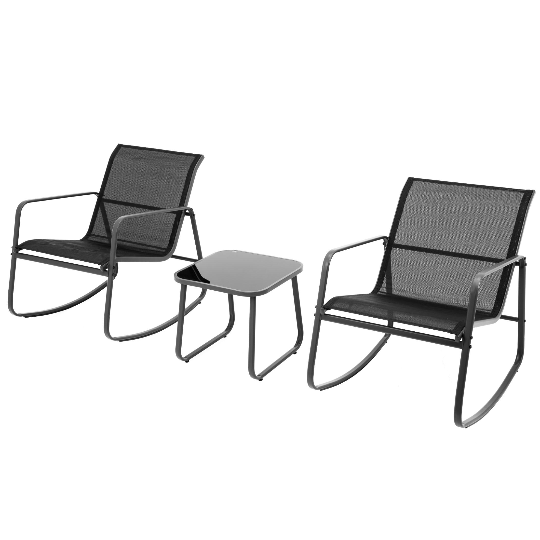 Zestaw Mebli Ogrodowych 2 Fotele Krzesła Bujane Textilene Stolik Szklany