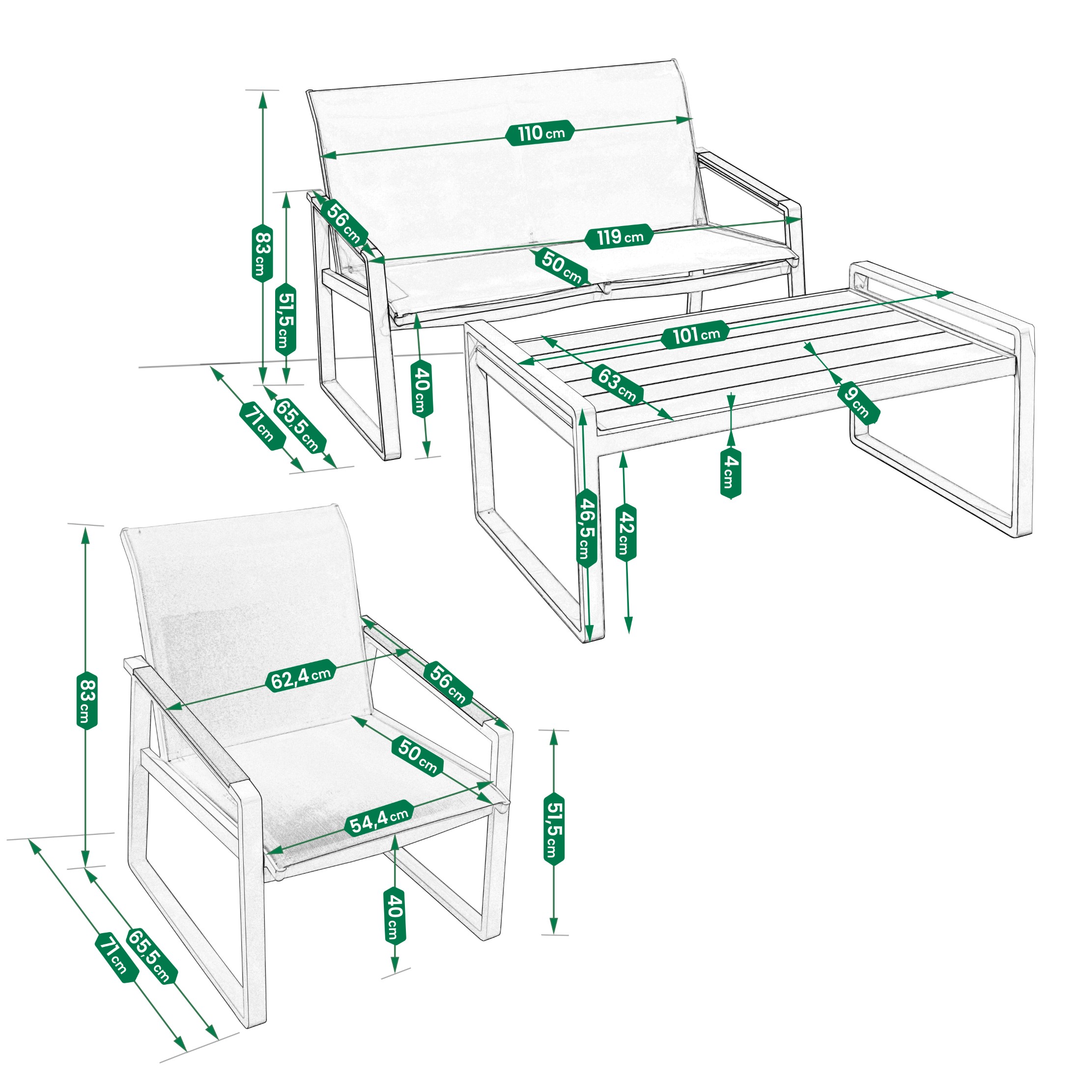 Zestaw Mebli Ogrodowych 2X Krzesło Sofa Stolik Komplet Aluminium Na Taras