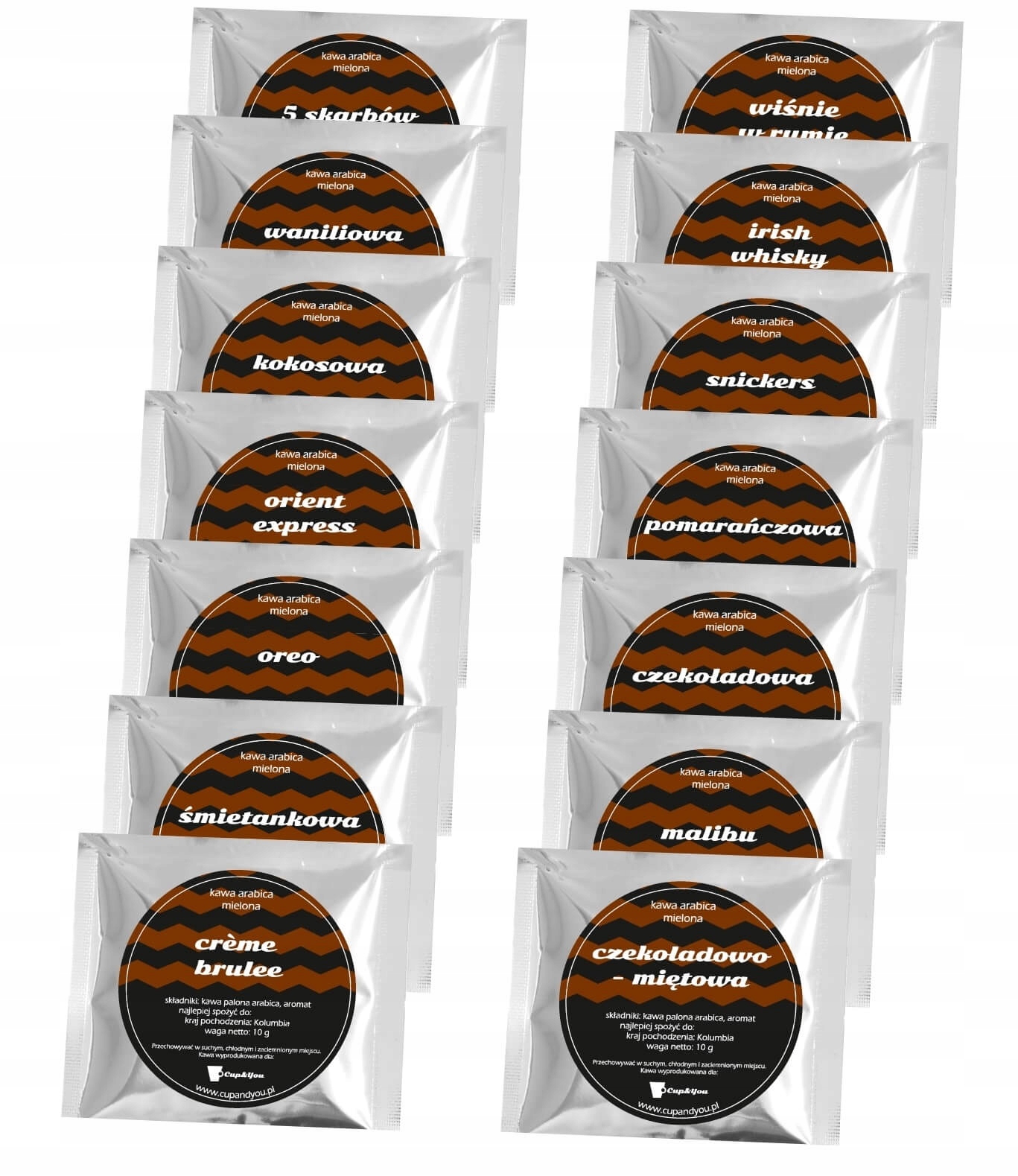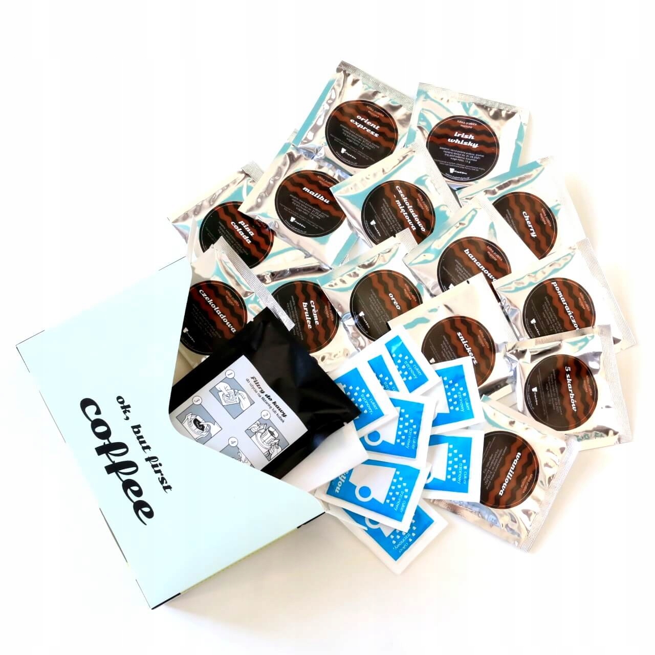 Zestaw mielonych kaw delikatesowych z filtrami gotowych do parzenia +cukier