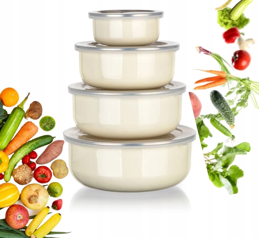 ZESTAW MISEK emaliowane na jedzenie żywność pojemnik pokrywki box lodówki