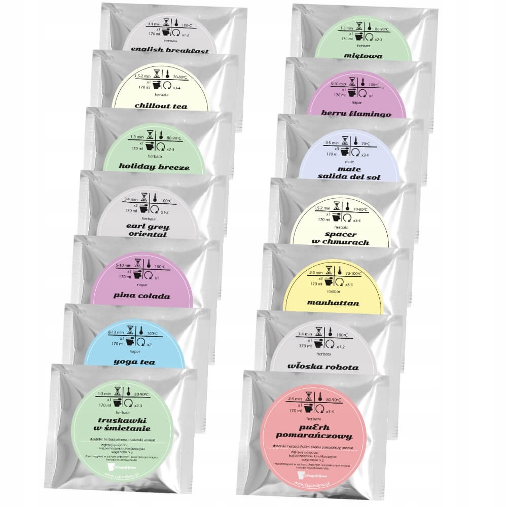 ✅ Każda herbata zapakowana jest w oddzielną saszetkę z dokładnym opisem oraz instrukcją dotyczącą parzenia