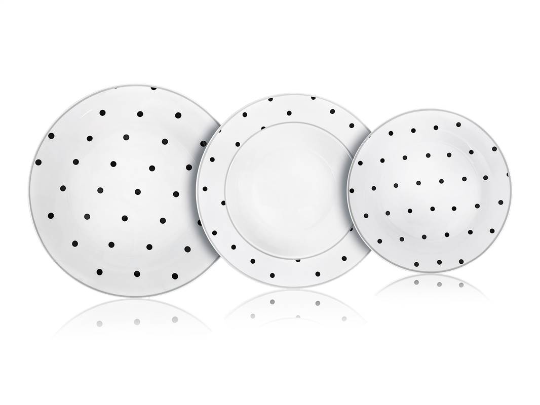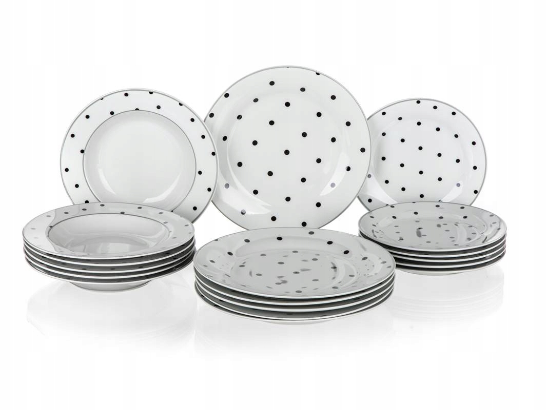 zestaw OBIADOWY 6 osób w KROPKI kropeczki 18 ele talerze jadalnia serwis