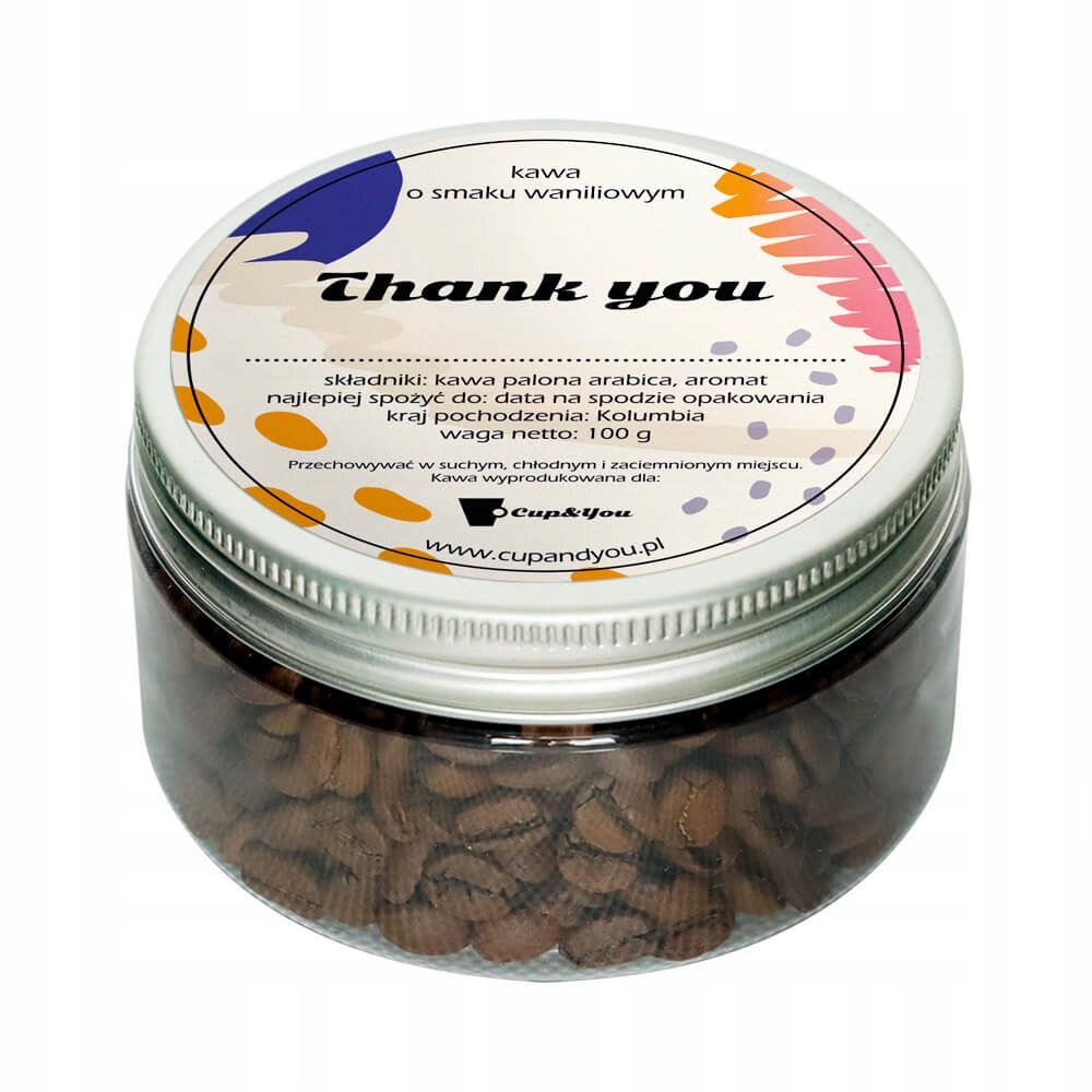 Zestaw prezentowy box "THANK YOU" z kawami smakowymi kubkiem i czekoladą z bakaliami - podziękowanie prezent upominek dla kobiety faceta niej niego