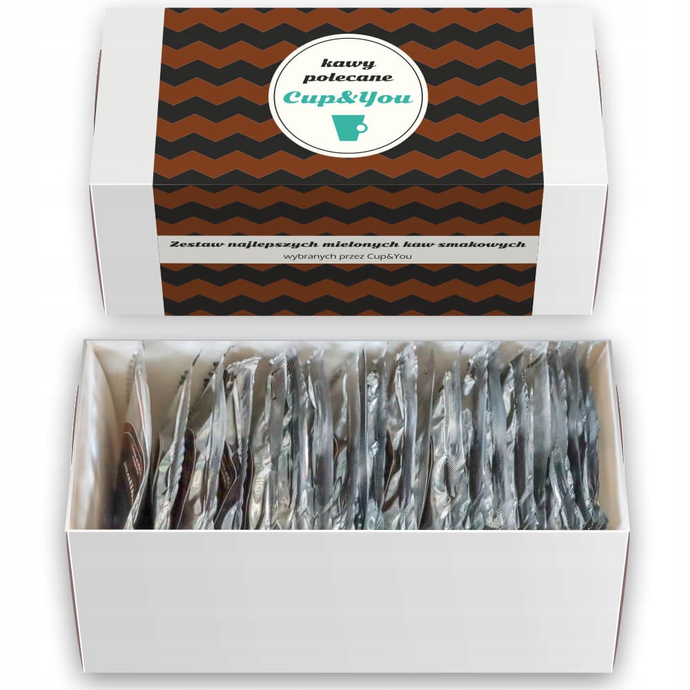 ZESTAW PREZENTOWY "KAWY POLECANE CUP&YOU" 20 RÓŻNYCH SMAKÓW KAW DESEROWYCH W SASZETKACH PO 10G NA 20 30 40 50 60 URODZINY IMIENINY DLA KOBIETY FACETA