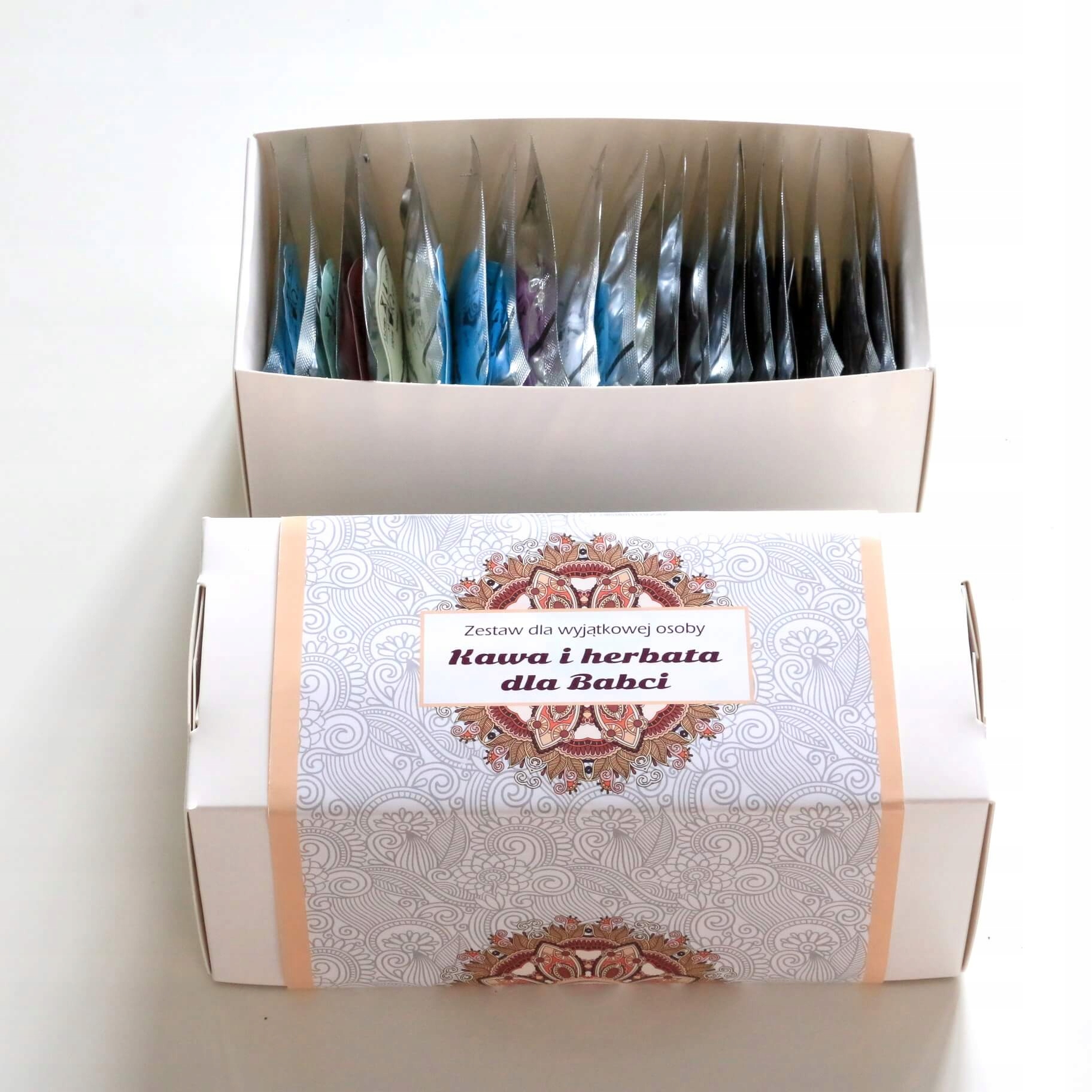 ZESTAW PREZENTOWY NA DZIEŃ BABCI PREZENT UPOMINEK 20 KAW I HERBAT DLA BABCI