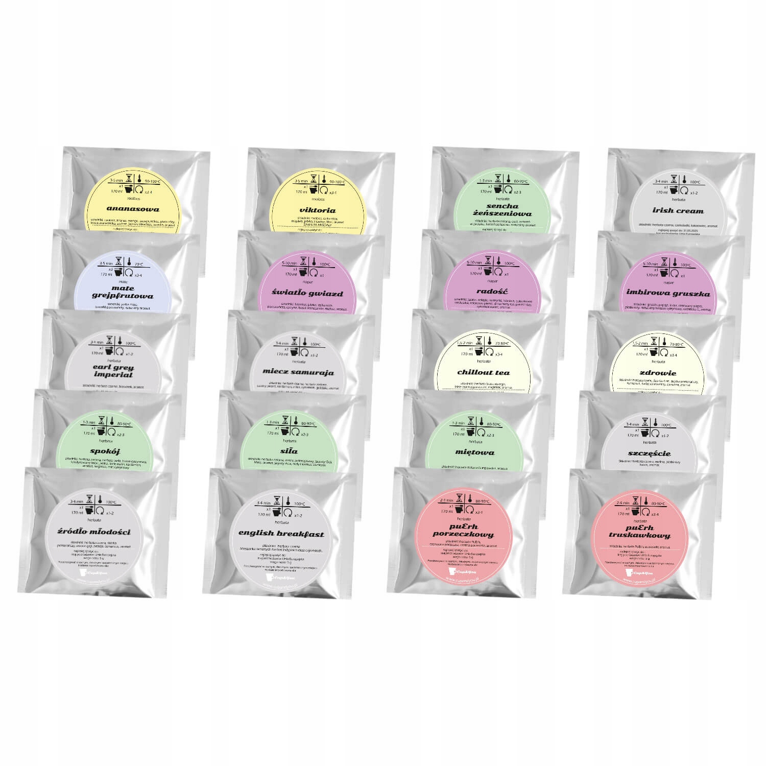 ⭐️ W zestawie znajdziesz 20 różnych smaków herbat sypanych: