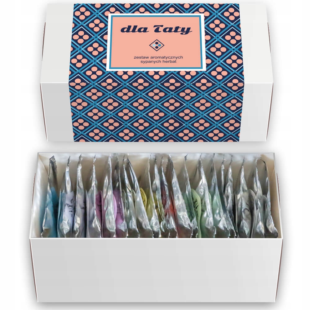 ZESTAW PREZENTOWY UPOMINKOWY BOX - 20 RÓŻNYCH HERBAT SYPANYCH W SASZETKACH - PREZENT UPOMINEK DLA TATY TEŚCIA NA DZIEŃ OJCA URODZINY