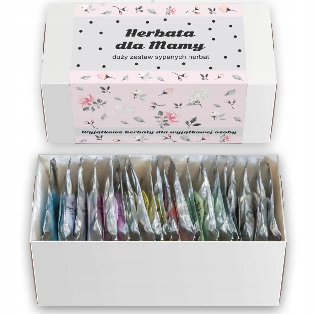Kompozycja 20 różnych smaków herbat, w eleganckim opakowaniu prezentowym z kwiatowymi akcentami, to zawsze oryginalny i ponadczasowy prezent, z którego każda mama będzie zadowolona. Specjalnie zaprojektowana etykieta pozwoli szczególnie podkreślić ten wyjątkowy dzień, a połączenie orzeźwiających smaków o zniewalającym, kwiatowym aromacie i wyglądzie będzie cudownym urozmaiceniem w codziennym rytuale picia herbaty.
