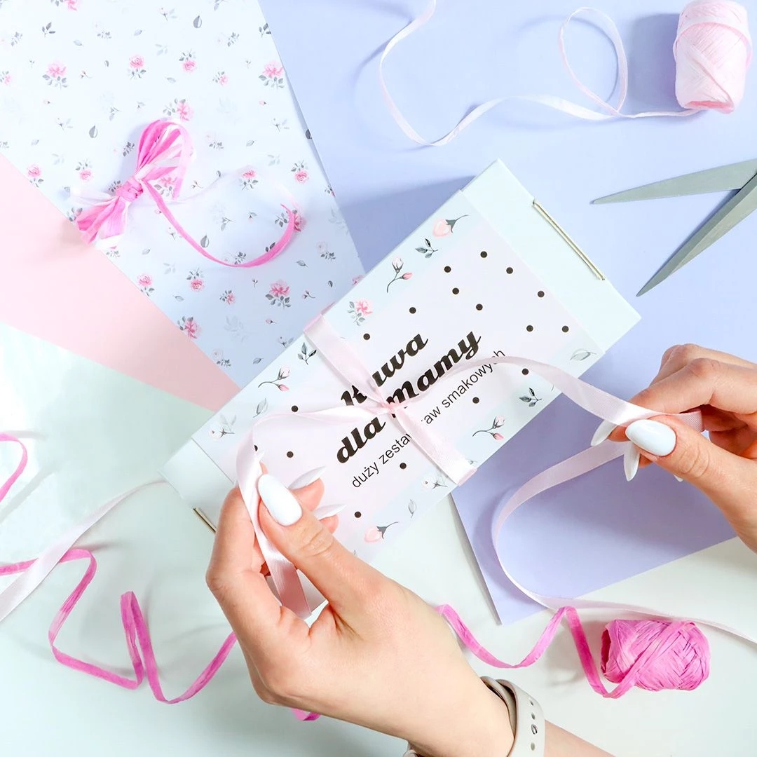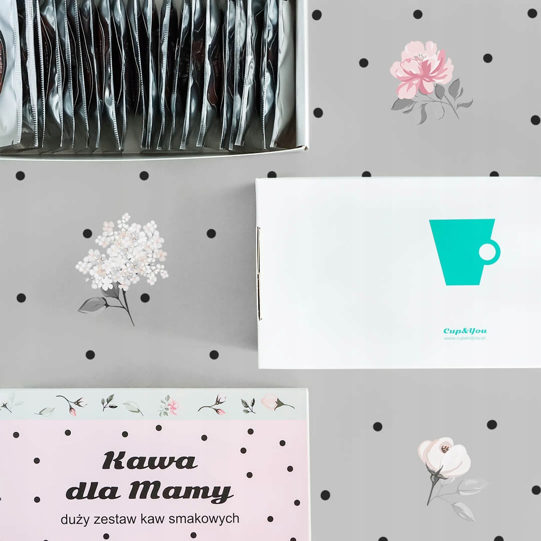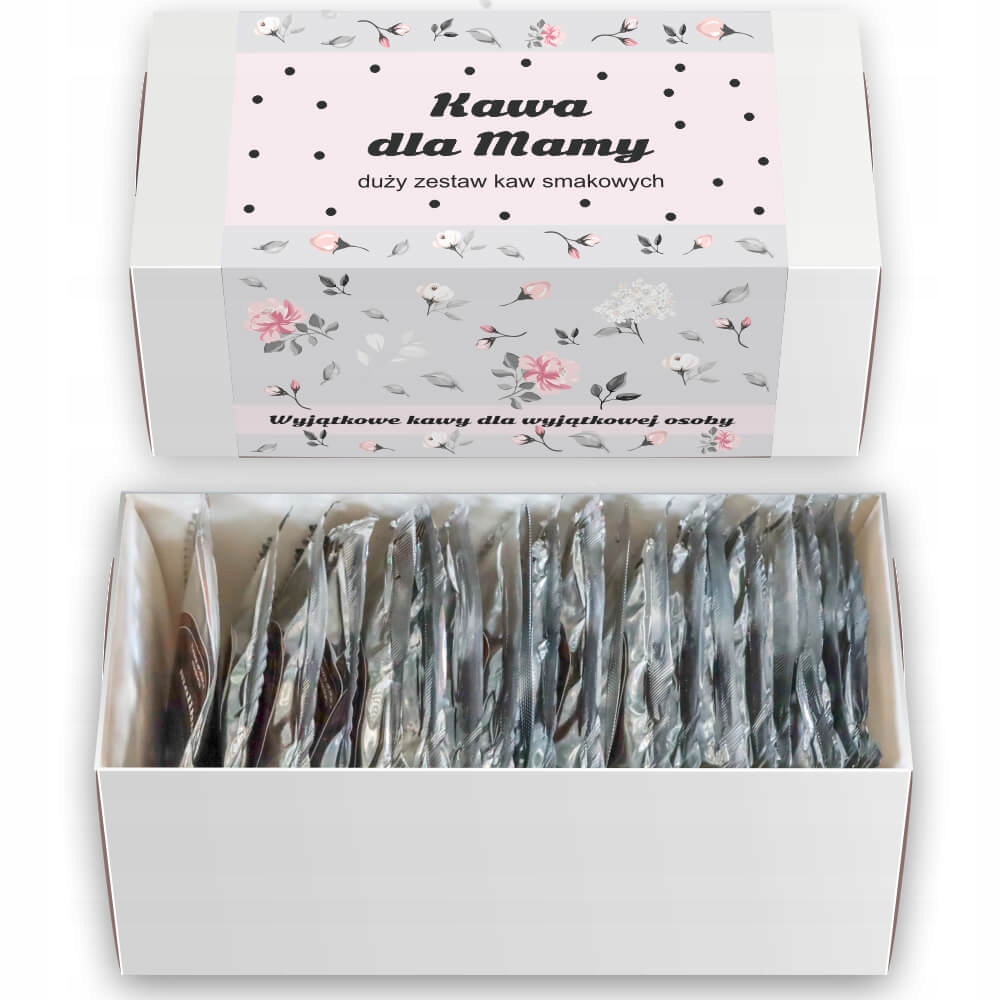 ZESTAW PREZENTOWY UPOMINKOWY BOX NA DZIEŃ MATKI URODZINY DLA MAMY TEŚCIOWEJ - MIX 20 RÓŻNYCH KAW SMAKOWYCH DESEROWYCH MIELONYCH ARABICA