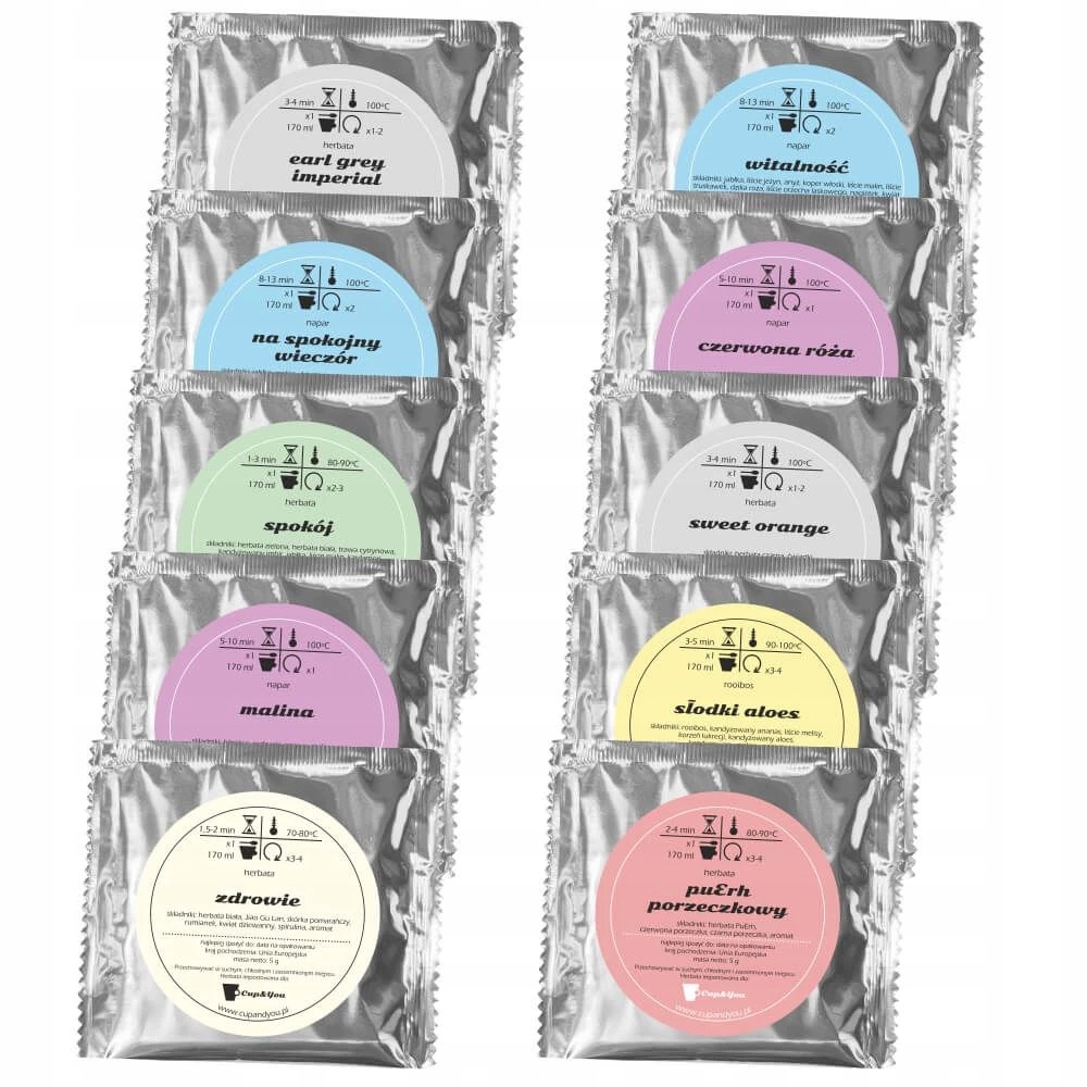 ⭐️ 10 saszetek z różnym rodzajem herbat sypanych: