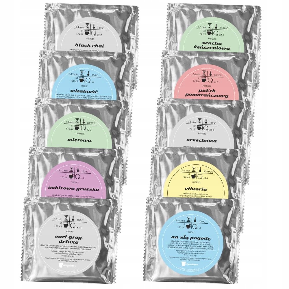 ⭐️ 10 saszetek z różnym rodzajem herbat sypanych: