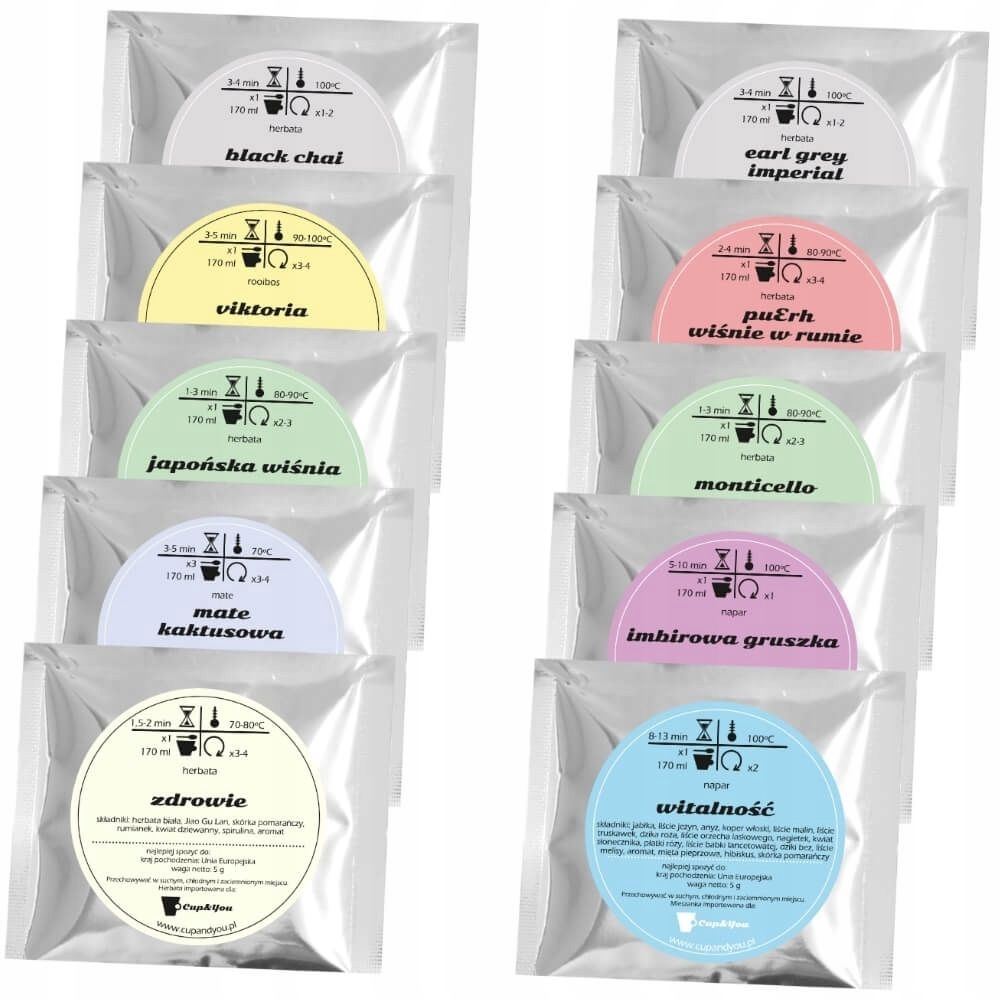 ⭐️ W zestawie znajdziesz 10 różnych smaków herbat sypanych: