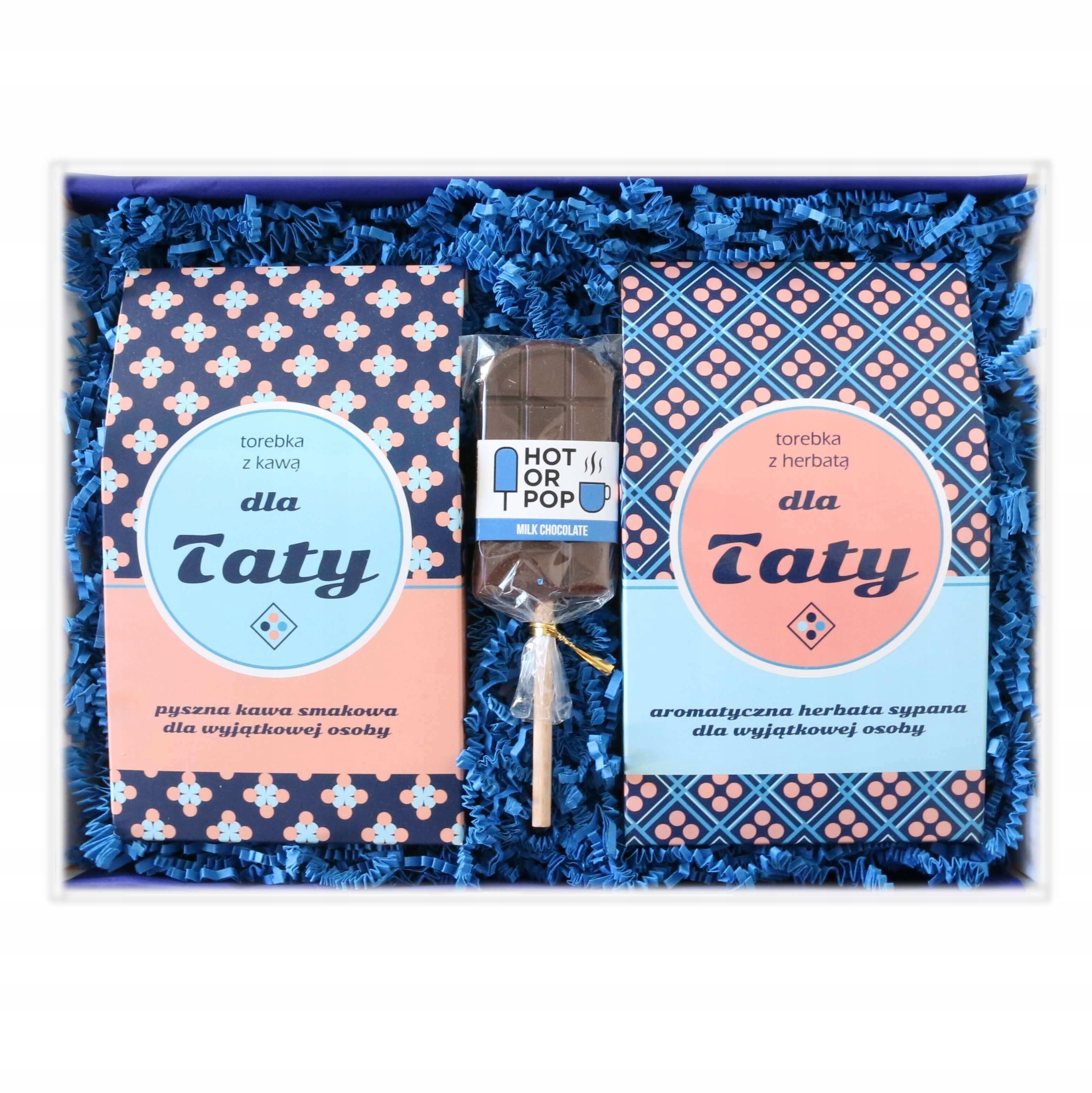 ZESTAW PREZENTOWY UPOMINKOWY - BOX PREMIUM PREZENT UPOMINEK DLA TATY TEŚCIA NA DZIEŃ OJCA URODZINY - KAWY SMAKOWE HERBATY SYPANE CZEKOLADOWY LIZAK