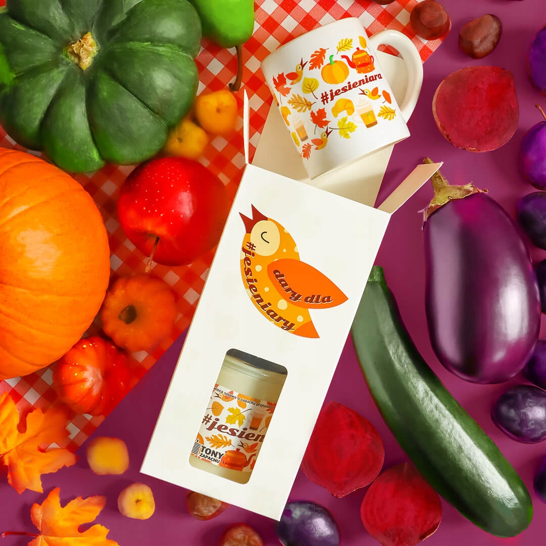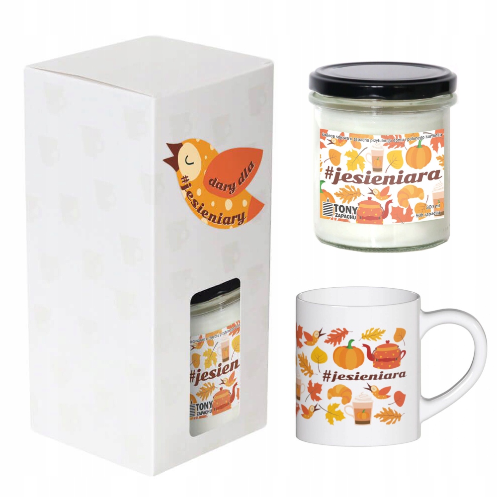 Zestaw prezentowy upominkowy DARY DLA #JESIENIARY świeca sojowa zapachowa + kubek na prezent upominek dla kobiety mamy koleżanki przyjaciółki żony dziewczyny