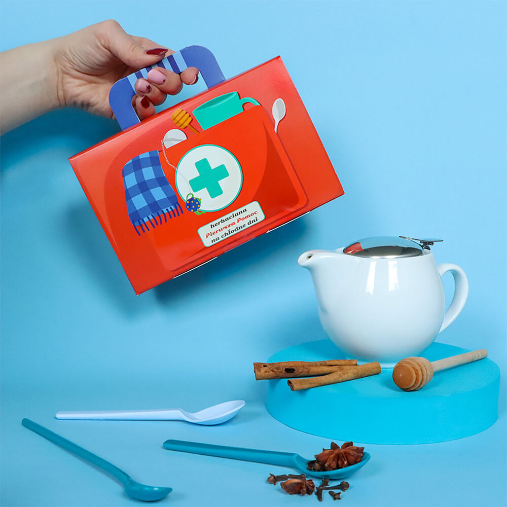 Zimno? Sięgnij po herbacianą pierwszą pomoc! Apteczka po brzegi wypełniona rozgrzewającymi mieszankami, to obowiązkowy gadżet każdego zmarzlucha. Każda saszetka to solidna dawka aromatycznego ciepła! 14 herbat sypanych różnego rodzaju, zamkniętych w stylizowanym na apteczkę opakowaniu, to świetna opcja na zimowy podarunek dla wszystkich wiecznie zziębniętych. Chłodne poranki i zimne wieczory nie będą już takie straszne!