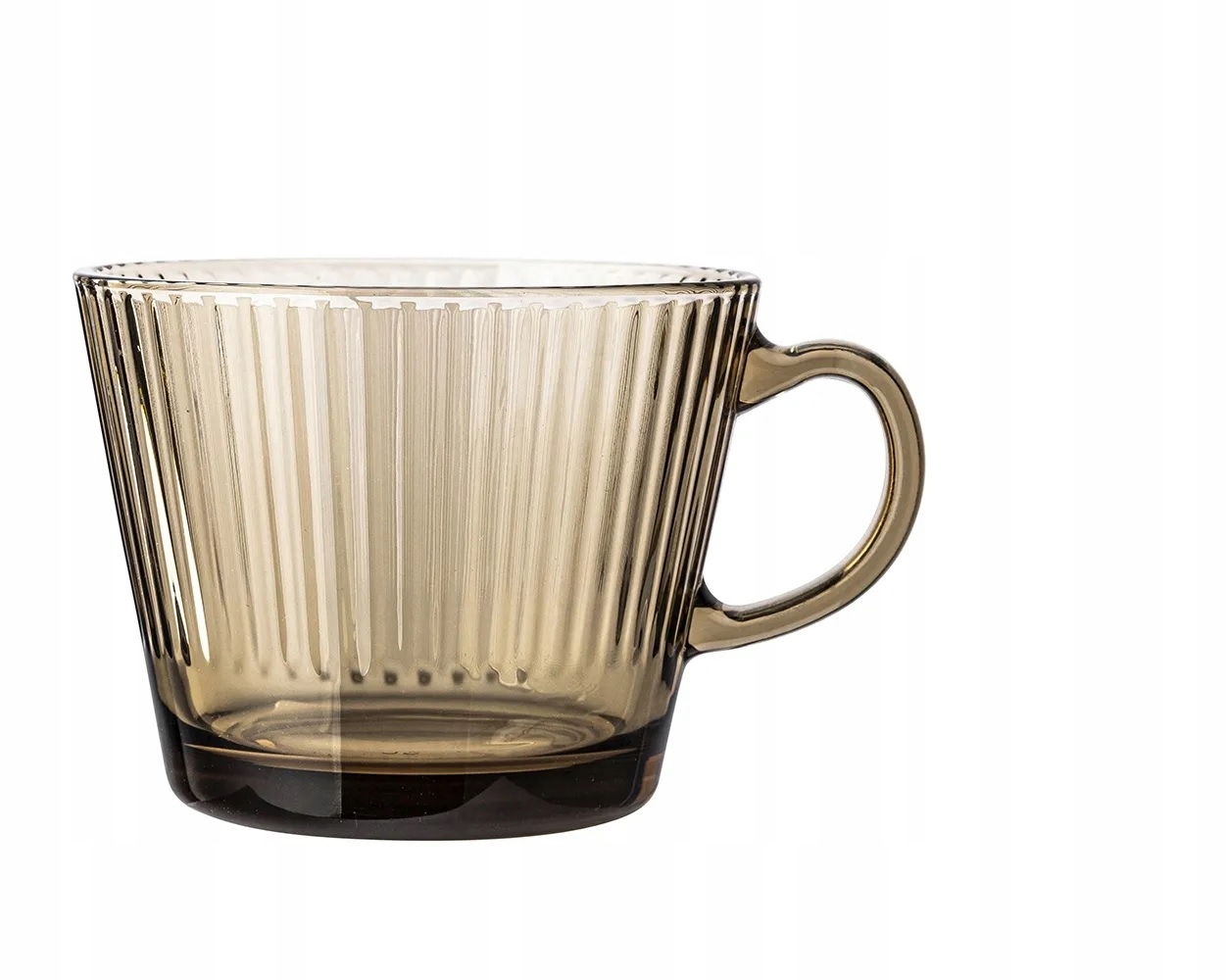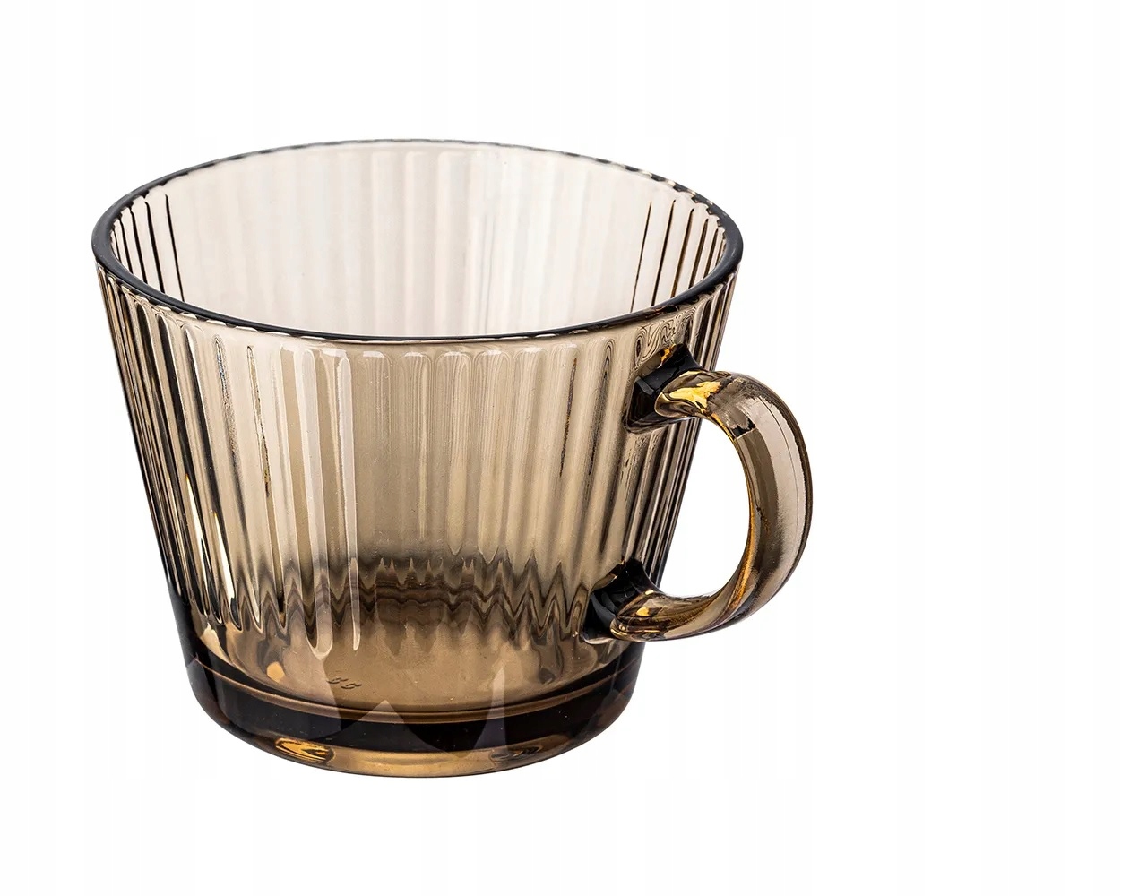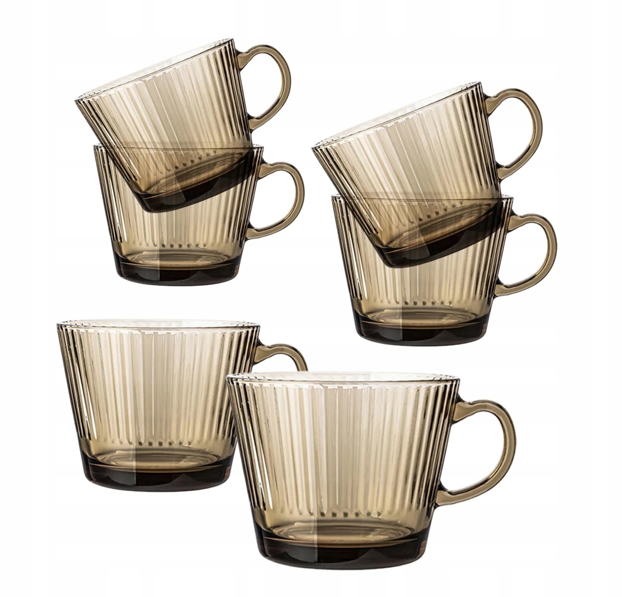 ZESTAW SZKLANEK KUBEK w paski plisy dymny 6x 410 ml na KAWĘ HERBATĘ napoje