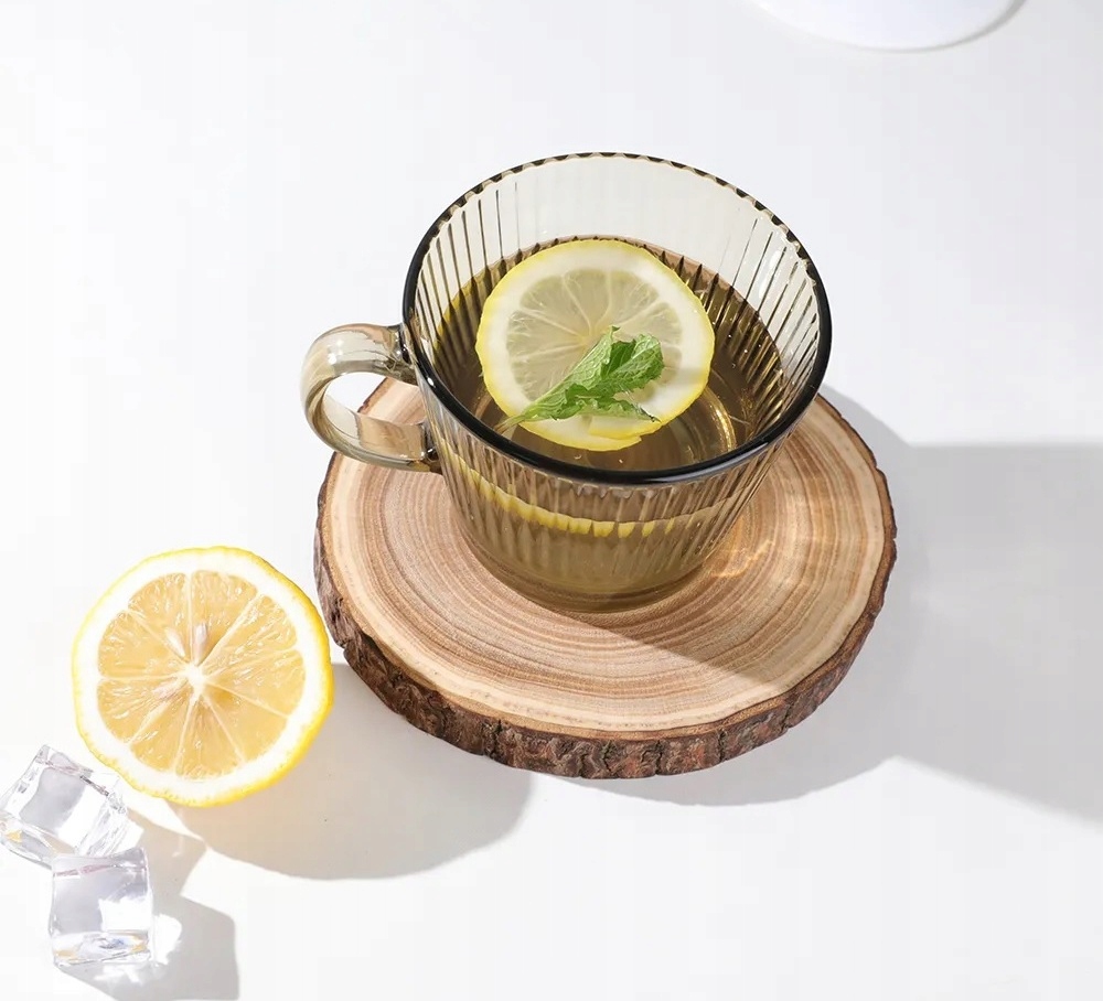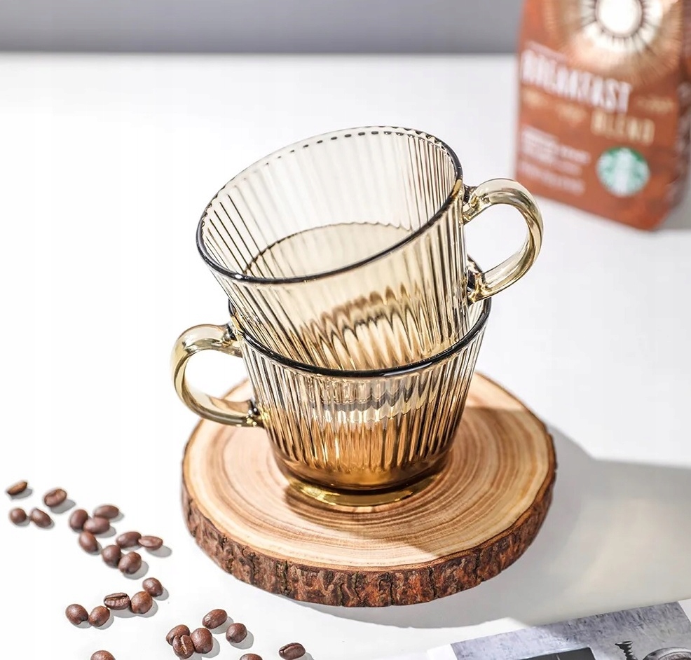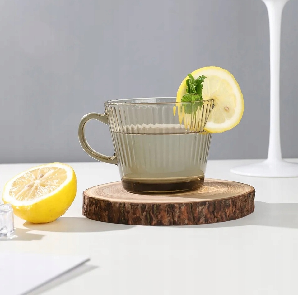 ZESTAW SZKLANEK KUBEK w paski plisy dymny 6x 410 ml na KAWĘ HERBATĘ napoje