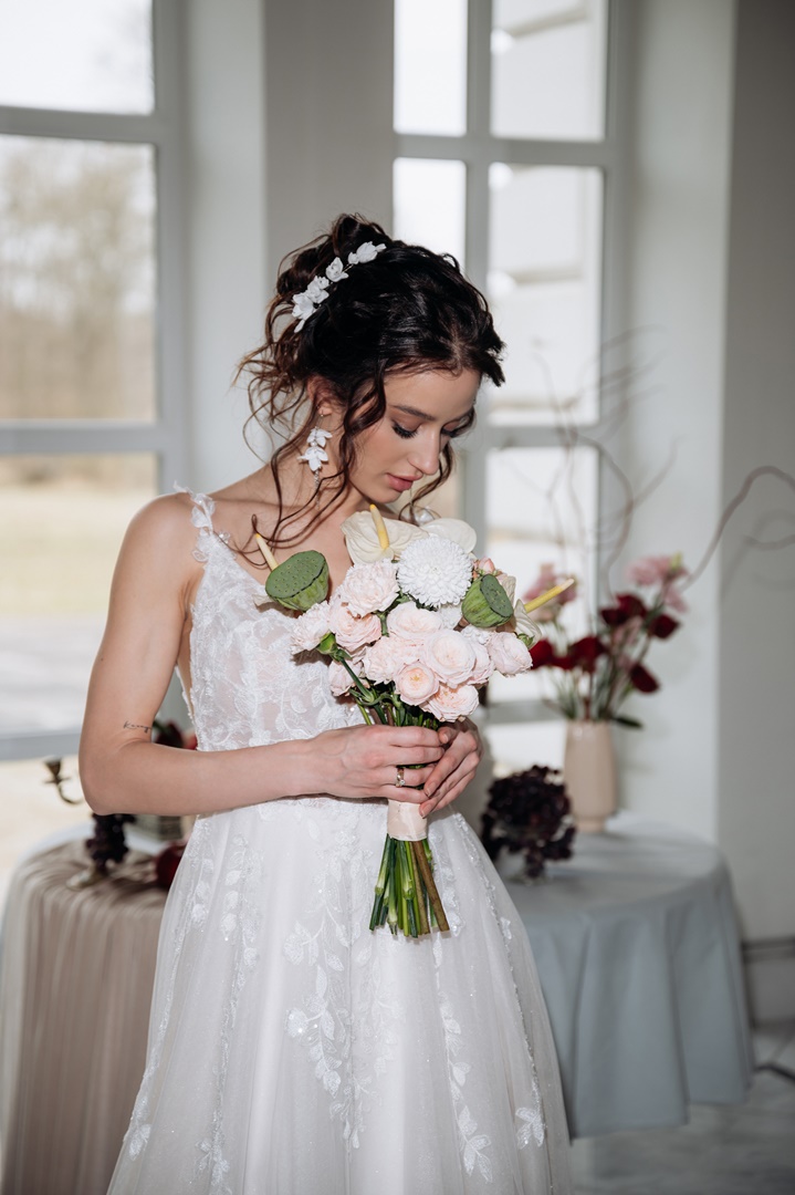 ZŁOTE kolczyki kwiatowe perłowe długie eleganckie BIGIEL boho rustykalne