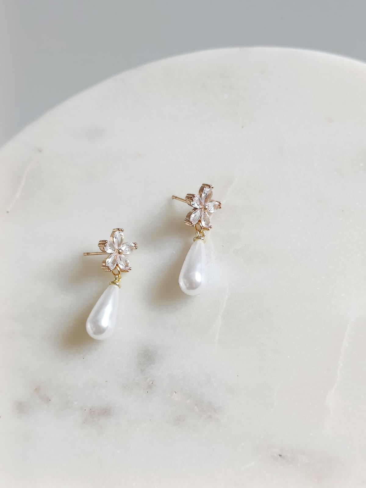 ZŁOTE kwiatowe kolczyki ślubne wiszące krótkie 3cm ROBIONE ręcznie boho