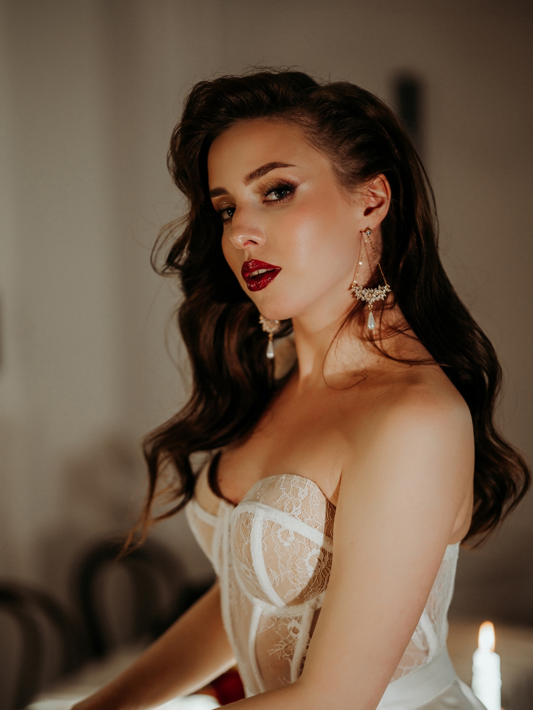 ZŁOTE wiszące kolczyki perły cyrkonie z kwiatami listkami ŚLUBNE łezki