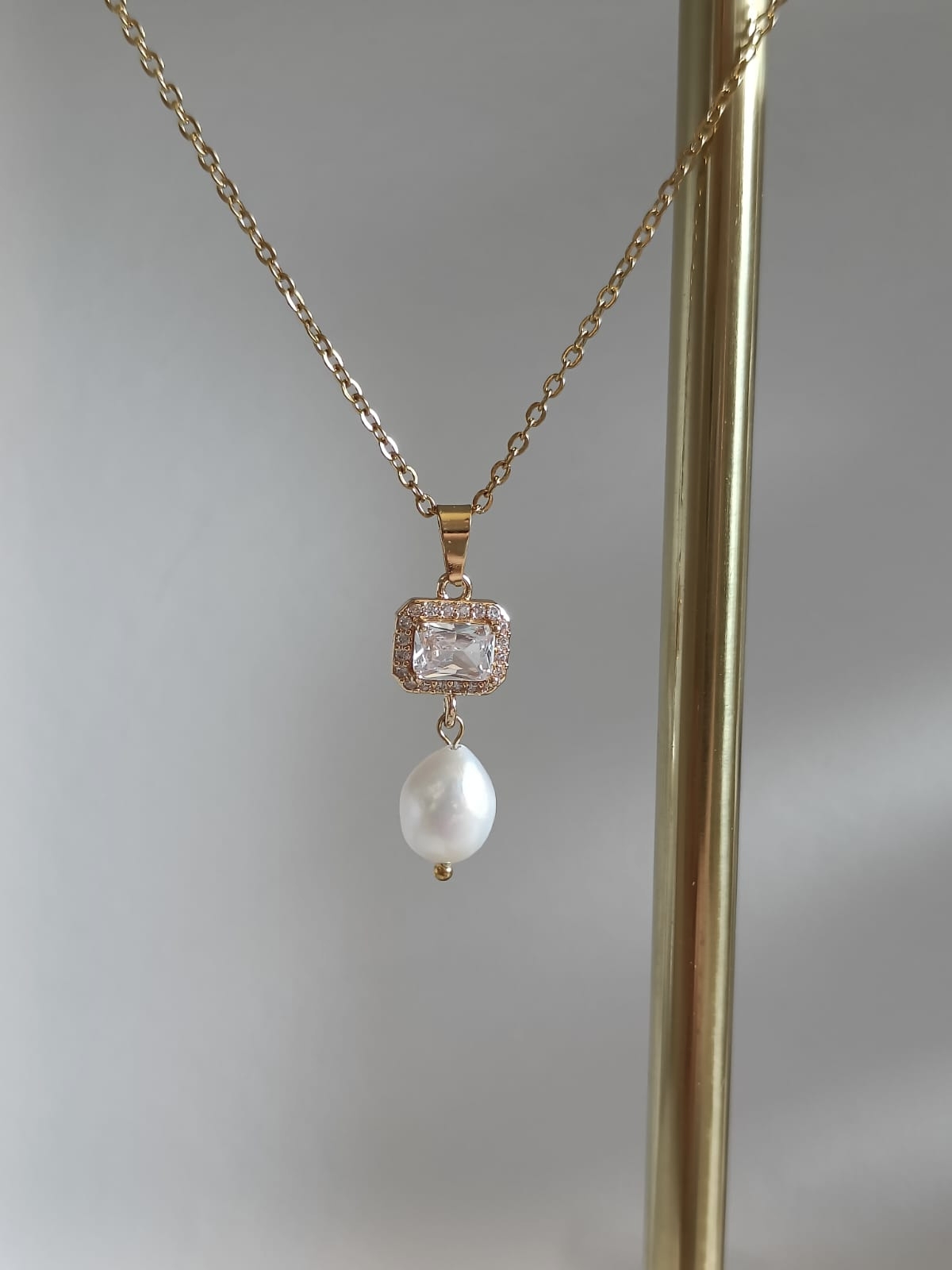 Złoty naszyjnik z perłą słodkowodną robiony RĘCZNIE elegancki BOHO glam